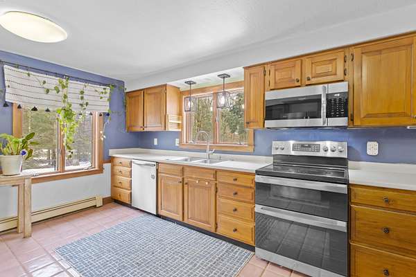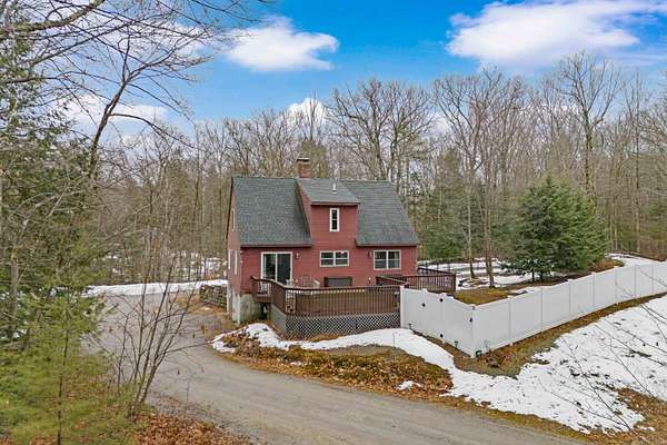 Welcome home to this beautiful 2-bedroom, 1.5-bath Cape offering 1,645 sq ft of living space and a 1-car garage. Ideally located just minutes from the Deering Reservoir, where you can enjoy kayaking, fishing, boating, or swimming. The main level features a spacious front-to-back living room with a cozy wood-burning fireplace. The oversized eat-in kitchen provides abundant cabinet storage and generous counter space, perfect for everyday living or entertaining. A half bath with convenient first-floor laundry completes this level. Upstairs, you’ll find two generously sized bedrooms with excellent closet space and a shared full bathroom. The walkout lower level offers a practical mudroom area with a wood stove along with plenty of storage space. Set back from the road, the property also features a fenced-in yard and a large front deck, ideal for grilling, relaxing, and entertaining. Schedule your showing today or join us for one of the open houses: Saturday, March 28th and Sunday, March 29th from 11:00 AM-12:30 PM. All offers are due by Monday, March 30th at 10:00 AM.