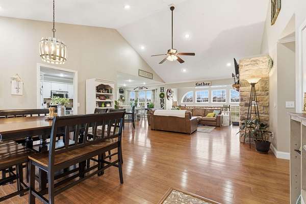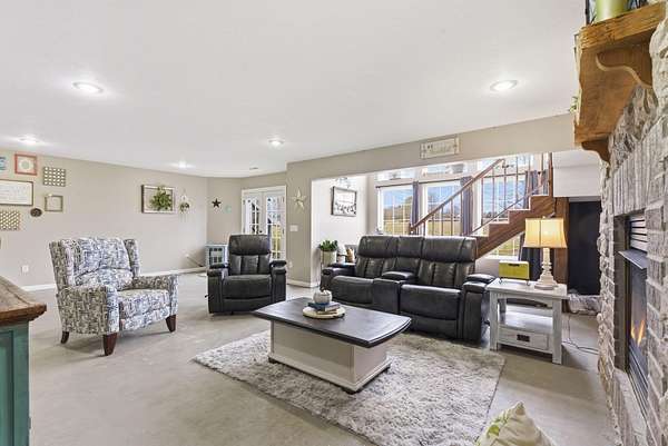 This spacious 4 bedroom, 3 bathroom, 3,754 sq ft walkout basement home sits on over 3 beautiful acres in a private, quiet setting -- offering the space and freedom of country living while still conveniently close to Republic and Springfield.Designed to take advantage of the setting, the home features large, beautiful windows along the back that bring in natural light and frame peaceful backyard views. Generous living areas, high ceilings that create an open feel, and multiple fireplaces add warmth and character throughout. The walkout basement provides flexible space, including 'man cave' areas ideal for hobbies, entertaining, or additional living quarters.Step outside to enjoy wide-open yard space and privacy from the covered deck overlooking the property. The acreage allows for a chicken coop and includes a feed shed, giving you the opportunity for a small hobby farm or simply extra storage and versatility. A dedicated fire pit area with swing creates the perfect spot for relaxing evenings outdoors, and the 30-amp RV hookup adds even more functionality for guests or travel enthusiasts.Recent updates and maintenance provide added peace of mind, including: septic tank pumped, new sump pump for French drain, new water heater, new pressure tank, furnace and HVAC serviced, new kitchen countertop and garbage disposal, tile backsplash, carpets professionally cleaned, and new fiber internet installed.If you're looking for usable acreage, privacy, natural light, and flexible living space -- all within easy reach of town -- this property delivers the best of both worlds.