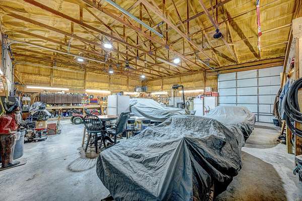 Discover the perfect blend of functionality and freedom on this 40-acre country property with stunning views of the Big Horn Mountains. The 2,400 sq ft barndominium features an 1,800 sq ft fully insulated shop, complete with gas forced-air heat, a wood stove, pellet stove, built-in benches, a shop-wide vacuum system, and a large overhead storage area. Attached is a cozy 600 sq ft living space offering 1 bedroom and 1 bathroom--ideal as a base while you build your dream home. With NO COVENANTS, abundant wildlife, vibrant wildflowers, and a 50-amp RV hookup already in place, this property is a rare opportunity to embrace rural living without compromise!