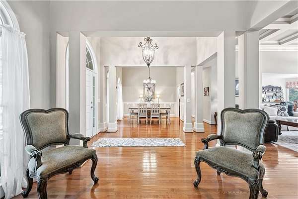 Welcome home to this custom-built 4-bedroom, 3.5-bath, one-owner ranch on a full, unfinished daylight basement situated on a large estate lot backing up to Lake Allatoona. You can walk to the lake and it's only 1 mile to the beach and boat access!! This home features a separate dining room, office/formal living room, and family room with soaring gorgeous coffered ceilings and a stone fireplace, open to a breakfast room and gourmet kitchen with granite countertops, stainless steel appliances, and plenty of storage. The primary suite on the main includes a vaulted tray ceiling and a beautifully updated ensuite bath with double vanity, separate whirlpool tub, glass shower, and a large closet. A sun porch/screened porch and sundeck are just off the master. Two additional bedrooms and a full bath are on the main floor and the fourth bedroom and full bath are upstairs, along with easy attic storage access. Access to the upstairs bedroom is just off the laundry area where a private staircase leads up.