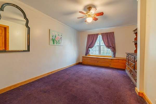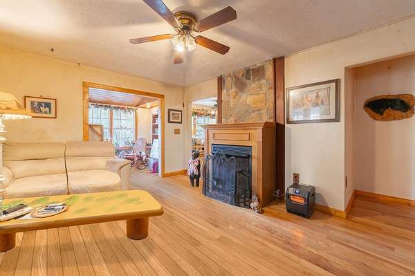 Set on 5.7 unrestricted acres, this 3-bedroom, 1-bath home offers privacy, potential, and room to create. Surrounded by mature trees and featuring a peaceful pond, the property includes a carport, two storage buildings, a fenced yard, and a private well—ideal for those seeking space and self-sufficiency. Access is provided via a recorded private road and right-of-way. Inside, you'll find wood floors, a functional kitchen, living room, sunroom, and a convenient mudroom entry with washer and dryer. Two bedrooms are carpeted, with linoleum flooring in the bathroom. The home is in good condition with a new roof in 2021 and is being sold As-Is, offering a great opportunity for buyers looking to personalize or improve over time. Heat is provided by a gas fireplace with temperature controls; financing may be possible, but buyers should verify lender requirements. With unrestricted land and ample acreage, this is a handyman's dream and a rare chance to build, garden, or create exactly what your lifestyle calls for. Motivated seller—bring your vision.