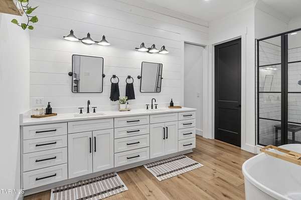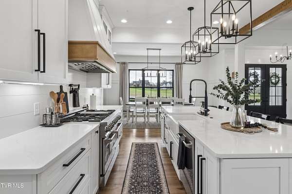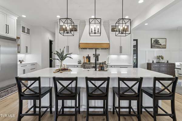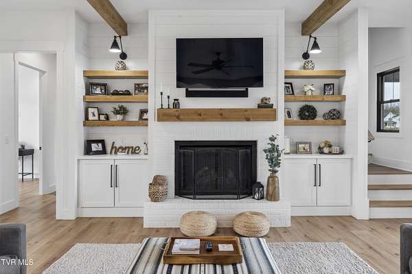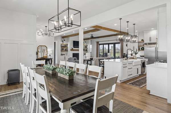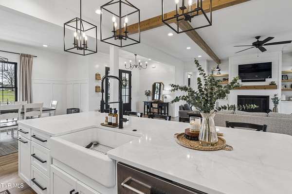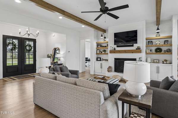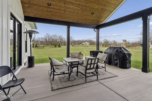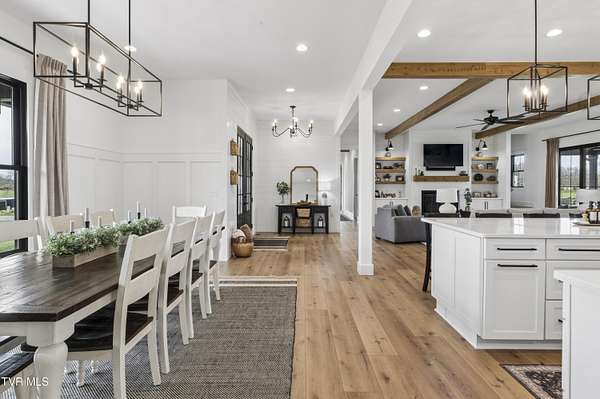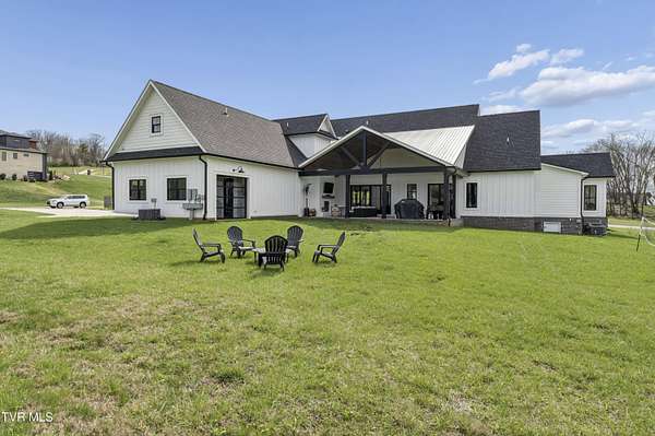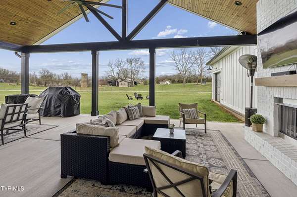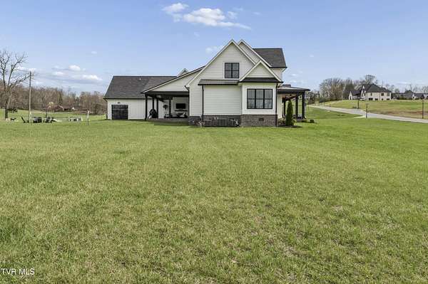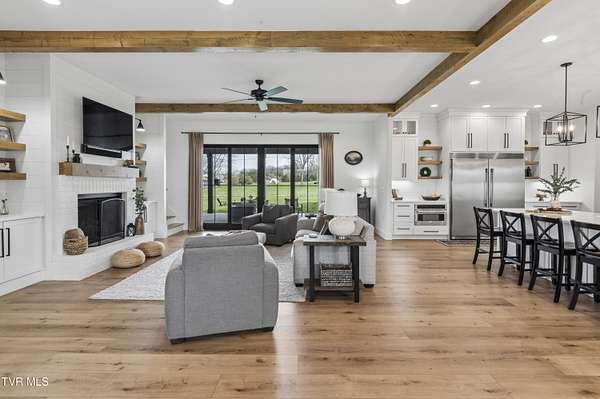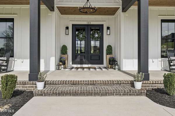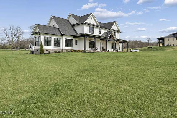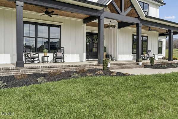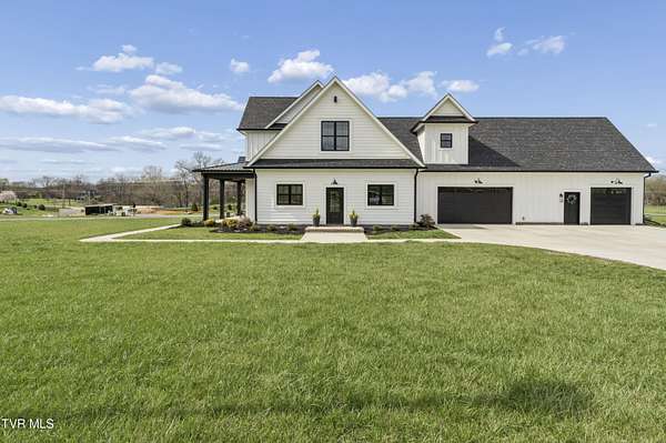 Welcome to a breathtaking modern farmhouse estate in Johnson City, offering the perfect blend of luxury, space, and refined country living. Situated on 2.1 picturesque acres in the desirable Duncan's Retreat neighborhood, this exceptional 6,000-square-foot home is thoughtfully designed for the modern family, combining high-end finishes with timeless architectural charm. From the moment you arrive, the inviting front porch, striking black accents, and clean white exterior set the tone for what's inside. Step through the double doors into a light-filled interior featuring wide-plank hardwood floors, soaring ceilings, and a seamless open-concept layout. The heart of the home is a designer chef's kitchen, complete with premium appliances, custom cabinetry, an oversized island, and elegant lighting--flowing effortlessly into the spacious living and dining areas. A stunning fireplace and exposed wood beams create a warm yet sophisticated gathering space, ideal for entertaining or everyday living. This home offers 7 generously sized bedrooms, with two en suites on the main floor, and 9.5 beautifully appointed bathrooms. The luxurious primary suite with a spa-inspired bath features a freestanding soaking tub and an expansive walk-in shower. A private office provides the perfect work-from-home environment, while the dedicated gym/studio is filled with natural light--ideal for wellness and productivity. Thoughtfully designed for flexibility, the property includes a fully equipped garage apartment with separate entrance while also accessible from the main house. This provides the perfect space for guests, extended family, or additional living space. Outdoor living is equally impressive, with a covered back patio featuring a brick fireplace and ample seating area, creating a true extension of the home for year-round enjoyment. This expansive area is an entertainer's dream. The picturesque acreage offers endless possibilities for recreation, relaxation and privacy. Offered at $2.1 million, this one-of-a-kind luxury property delivers elevated farmhouse living in a serene yet convenient Johnson City location. A rare opportunity to own a home that truly has it all. All info deemed reliable, buyer/buyer's agent to verify.