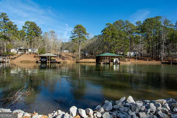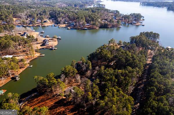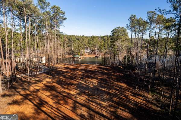 Back on the Market due to no fault of the Seller. This is your opportunity to own a rare, beautiful waterfront FEE SIMPLE lot on Lake Sinclair! This property is in a cove just off big water allowing you to avoid heavy boat traffic and be in big water in less than one minute. The view is amazing and the terrain and elevation make this an excellent lot for a slab or a walk-out basement. Much of the lot is a "tabletop" with a slope to the lake where rip-rap has been installed along the shoreline. According to Georgia Power renderings, there is 186' water frontage and GP has given verbal approval for max dock (Permit required). Water depth at end of dock level is approximately 5'-6' with deeper water (approx. 12') mid-cove. Lot has been cleared and driveway installed. Well and septic tank required. Perc test on file. Don't miss this opportunity to grab your slice of Lake Sinclair living!