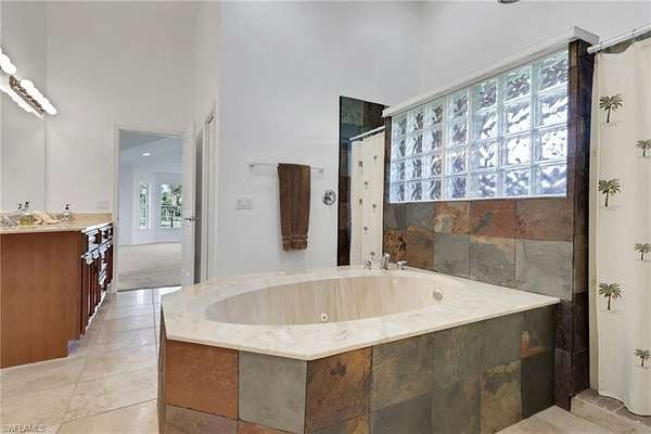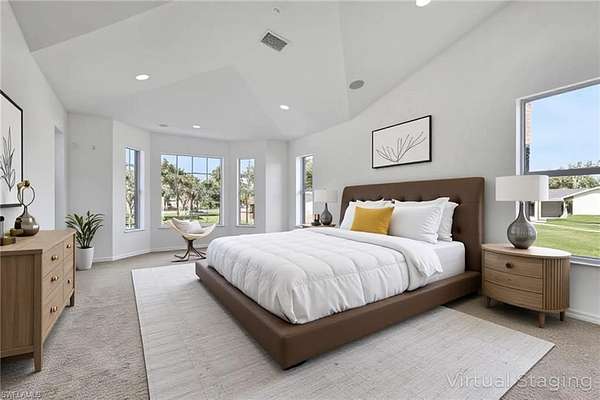 The open layout flows effortlessly into your own private oasis, a stunning pool area fully enclosed by a screened lanai. Designed with a serene, spa-like ambiance, this outdoor retreat invites you to unwind, entertain, or simply soak in the peaceful surroundings. Every corner of this home blends sophistication and warmth, creating the perfect balance between upscale living and inviting comfort. This home has an oversized main Bedroom and bathroom with a walk-in closet and a relaxing jetted tub that boasts a walk-around shower with multiple shower heads. Two additional bedrooms with a bathroom to share. A separate great room and a living room with a wet bar. The home includes a two car garage, salt water heated pool, spill-over spa and a pool bathroom. The many extra features make this home desirable to any buyer. The solar panels are owned and reduces the homes electric bill. Solar Panels heat the pool/spa, water heater with a recirculation pump, allowing hot water into the home. Additional solar panels control the temperature in the attic. Upgrades include Wifi capabilities to run the home garage door, pool/spa equipment, and new HVAC.