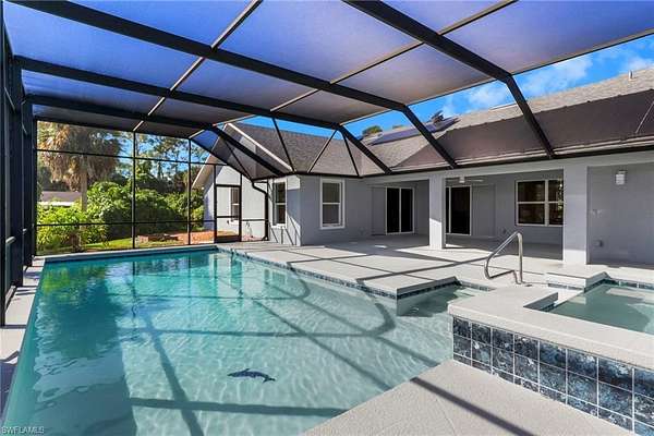 Experience elevated living in this beautifully refreshed 3 bedroom, 3 bath home, where modern elegance meets everyday comfort. From the moment you step inside, you'll notice the attention to detail, freshly painted interiors that feel bright and welcoming, paired with brand-new, high-end appliances. The open layout flows effortlessly into your own private oasis, a stunning pool area fully enclosed by a screened lanai. Designed with a serene, spa-like ambiance, this outdoor retreat invites you to unwind, entertain, or simply soak in the peaceful surroundings. Every corner of this home blends sophistication and warmth, creating the perfect balance between upscale living and inviting comfort. This home has an oversized main Bedroom and bathroom with a walk-in closet and a relaxing jetted tub that boasts a walk-around shower with multiple shower heads. Two additional bedrooms with a bathroom to share. A separate great room and a living room with a wet bar. The home includes a two car garage, salt water heated pool, spill-over spa and a pool bathroom. The many extra features make this home desirable to any buyer. The solar panels are owned and reduces the homes electric bill. Solar Panels heat the pool/spa, water heater with a recirculation pump, allowing hot water into the home. Additional solar panels control the temperature in the attic. Upgrades include Wifi capabilities to run the home garage door, pool/spa equipment, and new HVAC. On the property, there's an additional two-story building behind the home with two 13' electric garage doors to store equipment, motorhomes, and much more. Each floor is 1,152 sq. ft. Top floor has material left to complete the unfinished remodel along with an unfinished elevator shaft. Whether you're hosting guests or enjoying quiet evenings at home, this property offers a lifestyle that feels both refined and relaxing, your own slice of paradise.