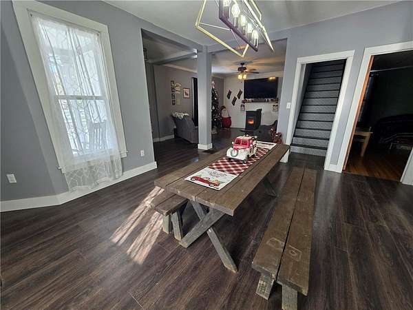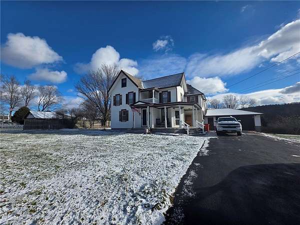Welcome to your dream farmhouse. This charming property offers a perfect blend of rustic elegance and modern convenience. Situated on an expansive 2.56-acre lot, this spacious home features 5 bedrooms and 2 bathrooms, providing ample space for family and guests alike. Step inside to discover a warm and inviting atmosphere with a large kitchen that's ideal for culinary adventures or casual dining with loved ones. The convenience of first-floor laundry simplifies daily chores, while the main floor bedroom offers flexibility as a guest room or office space. Enjoy an evening next to the pellet stove or sit on the front porch enjoying your home. The attached 2-car garage ensures plenty of storage for vehicles or equipment. Its convenient location places you within easy reach of Watkins Glen, Corning, Big Flats. Embrace outdoor living with vast open spaces perfect for gardening, recreation, or relaxing evenings under starry skies. This farmhouse is more than just a house; it's a forever home waiting for you. Make it yours today!
