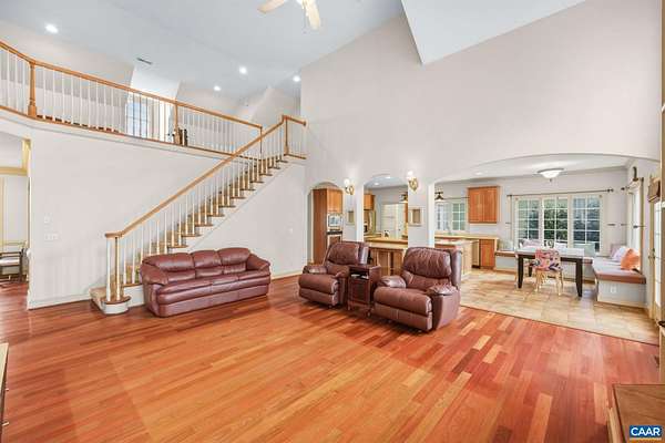 Welcome to 1330 Elderberry Place, a beautifully designed residence in the desirable Walnut Hills community of Earlysville, set on 1.58 landscaped acres surrounded by mature trees and thoughtfully planned gardens. Offering over 5,600 finished square feet, this spacious home blends elegant architecture with comfortable everyday living. The main level features gracious living and entertaining spaces, including a welcoming foyer, formal living and dining room, and a great room that opens to the kitchen and breakfast area. Large windows throughout the home invite natural light while framing views of the surrounding landscape, creating a warm and inviting atmosphere. A main-level primary suite provides a private retreat with its own deck overlooking the gardens, while an office or study offers a quiet space for work or reflection. The upper level includes three additional bedrooms and loft area providing ample space for family and guests. The terrace level expands the home’s versatility with a second kitchen and additional finished space ideal for recreation, fitness, or guest accommodations. Outdoor living is equally inviting. The home is complemented by thoughtfully designed terraces, gardens, and outdoor spaces.