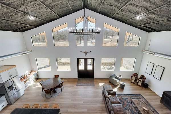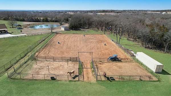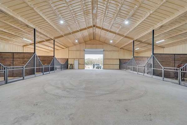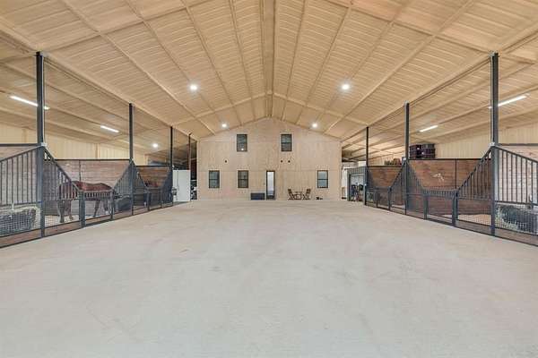 Welcome to luxury ranch living in Gainesville, TX where modern elegance meets country charm. This exquisite barndominium estate spans 3000 sqft. of meticulously designed living space featuring 4 bedrooms, 3 bathrooms, office, and upstairs living space, blending high-end finishes with rustic sophistication. The open floorpan is perfect for entertaining. Nestled on 11 ag-exempt acres, this property is a haven for equestrians, featuring sandy loam soil, a state-of-the-art 5700 sqft horse barn with custom stalls, tack room, and wash bay, 130x180 outdoor arena with two 40x60 attached pens. Mare motel features 4 additional stalls with turnouts. Storage on both side of the home, are perfect to store your trailer, RV, or ATVs. Separate RV hook ups are also available. Expansive no climb fenced pastures, and unparalleled privacy make this a rare North Texas gem. Whether you're a horse enthusiast or seeking an upscale retreat, this ranch is a dream come true. *this property is NOT in a 100 year or 500 year flood plain*