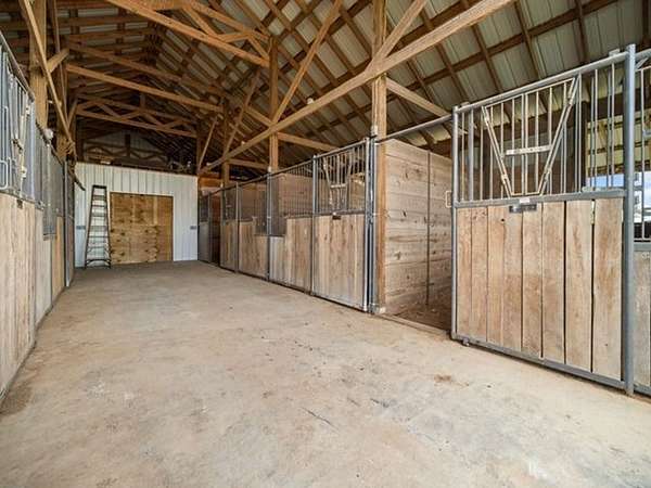 Horse enthusiasts will fall in love with the equestrian facility, featuring a 36x60 barn complete with eight 10x12 walk-out stalls, a 20x36 finished area with wash stall, feed and tack room, and 10-foot lean-tos on both sides. Designed with functionality and animal well-being in mind, the entire setup is ready for your horses or livestock.