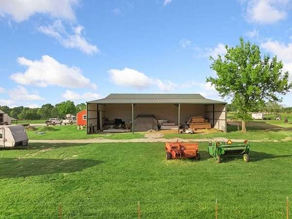 The property is fully fenced with multiple gates and cross-fencing, ensuring both ease of movement and livestock management. A gravel lane leads you through the grounds, which include Two RV hookups with septic power and water, adding both convenience and income potential. The high-quality tillable acreage is currently home to a thriving strawberry patch--a testament to the fertile, well-maintained land.