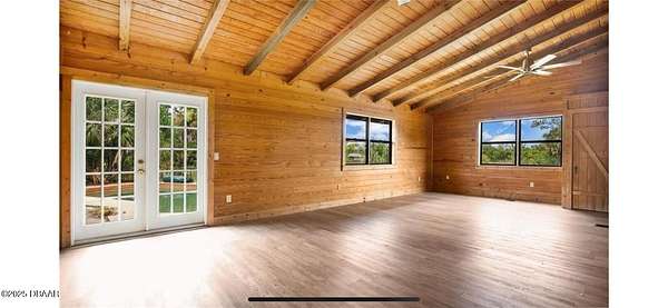 Discover true farm-country living at Reveille Farms in Astor, FL. Tucked away on a private dirt road, this charming 2-bedroom, 2-bath log cabin sits on 5 peaceful acres, offering the perfect blend of rustic charm, privacy, and modern comfort. Step inside to find real wood floors, warm natural finishes, and an inviting open layout that feels like home the moment you walk in. Enjoy Florida living year-round with your private pool, ideal for relaxing, entertaining, or cooling off after a day on the farm. Designed with horse owners in mind, the property features TWO separate barns, providing ample room for stalls, tack, feed, equipment, or future expansion. There's plenty of pasture space and open land to create your ideal setup. If you're looking for privacy, acreage, and authentic cabin living, this Astor retreat has it all.