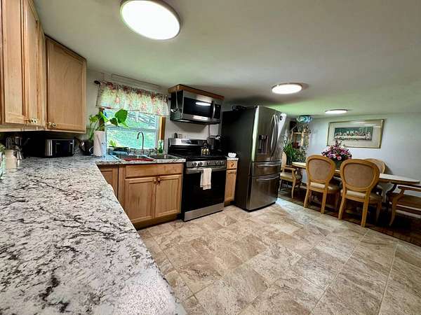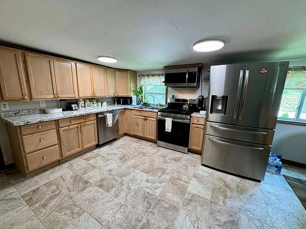 1330 Ripley Rd., Spencer, WV ---------Location, location, location....this property has the perfect location, only 1 mile from town on Ripley Road. This one level home has been COMPLETELY REMODELED. This country charmer includes 3 acres +/- and also an attached 1 bedroom efficiency apartment that Is currently being leased for $750 per month for rent. Main home includes 2 bedrooms and 2 full baths, kitchen (with new stainless-steel appliances)/dining combo, living room, mud room, storage room and cellar. Property offers large garden area, fenced in area for goats, small stream and nice yard. Entire home includes nearly 2,000 sq ft. Allow renters to help make mortgage payment. Outdoor area will impress anyone with the covered front porch and side concrete patio for entertaining. $215,000