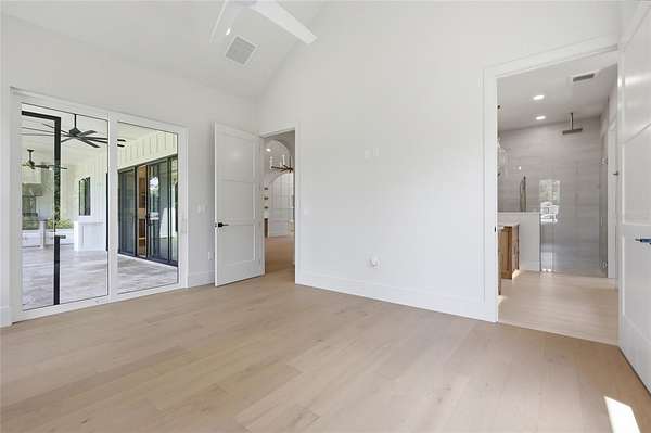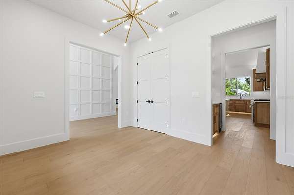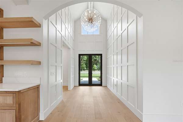 Step inside through a Pella front door into a stunning paneled foyer with soaring ceilings and statement lighting. Just off the entry, a flexible room with a closet offers incredible versatility—perfect as a fifth bedroom, office, formal dining space, sitting room, or even a private speakeasy-style retreat. The layout flows effortlessly, with a mudroom located off the side-entry garage and a half bath positioned nearby, ideal for future pool access. A spacious walk-in pantry is conveniently placed for unloading groceries, while a private guest wing or second primary suite features its own walk-in closet and ensuite bath for comfort and privacy.