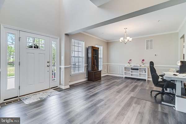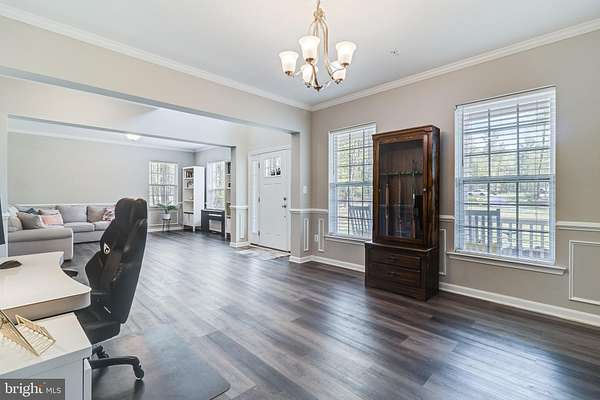 Welcome Home to 13301 Windjammer Court! Price Improvement!!! This stately colonial, nestled on a 1.88-acre lot with beautiful wooded views, offers the perfect blend of privacy, space, and luxury living. Tucked away on an extended private driveway, you'll enjoy peace, seclusion, surrounded by wooded views. Boasting over 4,000 square feet above grade and an additional 2,238 square feet in the walk-out basement to be finished to your liking, this home provides all the space you need to live, work, and entertain in style. Greeted by a charming colonial front porch, you'll step into a thoughtfully designed home featuring five spacious bedrooms, 4.5 bathrooms, and a three-car garage. Throughout the home, you'll find upgraded luxury vinyl plank flooring-stylish, durable, and easy to maintain. The open-concept main level includes a formal dining room, a welcoming great room with a cozy gas fireplace, and a dream kitchen outfitted with quartz countertops, double wall ovens, a gas-ready range hookup, an oversized island with bar seating, a walk-in pantry, and a bright morning room perfect for soaking in the sunshine and taking in the tranquil wooded surroundings. The main-level bedroom suite offers convenience and comfort, with its own walk-in closet and full private bath-perfect for guests or multi-generational living. Upstairs, escape to the massive owner's suite, complete with a dream walk-in closet and a luxurious en-suite bath featuring double vanities, a soaking tub, separate shower, vanity counter, and a private water closet. Three additional bedrooms complete the upper level-two with private baths, and one with shared access. No shortage of hot water here -this home is equipped with a tankless water heater to comfortably serve all 4.5 bathrooms. A spacious upstairs laundry room adds everyday convenience and functionality. Additionally these is another full laundry room with hook ups on the main level, again lending to the possibility of multigenerational living. The walk-out basement offers an additional 2,238 square feet ready for your vision, with a full bath rough-in already in place. Whether you dream of a home theater, gym, guest suite, or rec room, this space is ready to become whatever your family needs. Don't miss this incredible opportunity to own a truly special home on a private 1.88-acre wooded lot in Hughesville, complete with high-end finishes and modern upgrades throughout.