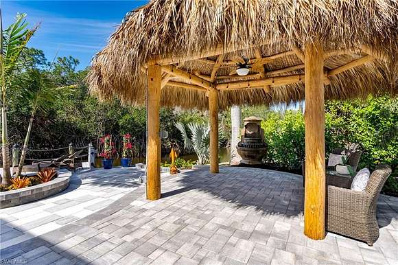 As you walk, you can't help but to notice that on the way to your huge dock, the pavers are tiered, providing interest and several distinct entertainment areas. You continue and see the tiki and then listen to the falling water from your lighted water feature... the water cascading down glistens like diamonds, but you press on. You go to the dock, you can't wait to get in your boat and cruise to the gulf. There is a bridge so you lower your bimini top as we are now at high tide. You have a wonderful day on the water and now return, but wait it is dusk.. now the water feature takes on new life with the back lighting, the tiers of your patios are lit from underneath, key elements of your tropical landscaping are lit up and welcoming and now you are home! You gather your things and sit in your tiki enjoying the sound of falling water and know you have arrived.