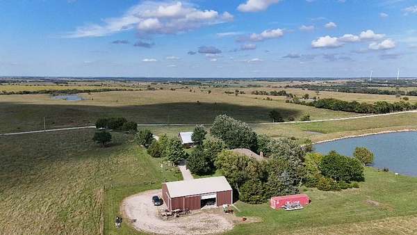 Nestled just off Highway 75, this exceptional rural residence on 100 +/- acres presents a rare opportunity for those dreaming of country living! This ranch style house, sizable shop, 6 +/- acre pond, and approximately 90 acres of tame pasture all combine to offer both functionality and charm. Adorned by beautiful brick and an inviting front porch, this property would make a perfect place for you and your family to make lifelong memories. Built in 1997, there have been many updates made throughout the home in recent years including new flooring, new roof, composite decks and more! The residence is composed of 1,456 square feet on the main floor with over 1,200 of finished square footage in the basement. Featuring beautiful flooring and multiple windows, the spacious living room opens to the dining room and kitchen area providing a seamless flow through the main floor. Upstairs, you'll find the master suite with a walk-in closet and private bathroom with a garden tub and shower. Another bedroom and a full bathroom can be found on the other side of the house for even more privacy and seclusion in the master. On the main level, the laundry room is well-placed for convenience. A versatile space off the laundry, currently used as an office, has its own exterior entrance offering flexibility for guests, work, or extra storage. The basement features 2 additional bedrooms with one being non-conforming, a full bathroom, cozy living/family room area and office nook. You'll love the custom built-ins and charming fireplace found here. This roomy walkout basement has two doorways for ideal spots to enjoy the gorgeous Kansas weather and spend time with your friends and family. Just outside the dining room, the back deck provides priceless views of the Kansas sunrise overlooking the expansive pond that is stocked with bass, catfish and bluegill as a food source. Imagine enjoying your morning cup of coffee overlooking your own piece of paradise or making lifelong memories with the family while generating fish stories. The well maintained lush yard is just one testament to the attention and care given to this property over the years by the current owners. The mature oak and maple trees throughout the yard provide plenty of options for finding a shade tree to relax under. The metal shop measures 60' X 40' and includes 2 large sliding doors, concrete floor and electrical service already in place, including 220 for welders. This would be a wonderful place to store equipment, work on projects or even host a family get together. An original barn which is located on the north end of the house not only adds to the character of this property but also provides excellent storage and plenty of potential for other uses. With a generous 6 +/- acre stocked pond, you'll have an ample water source for your livestock as well as a bonus spot for fishing. The land is already fenced for cattle, minimizing your up-front cost. This pasture is clean, productive, and well-balanced, with a mix of fescue and native grasses that provide excellent forage. The location is one that can't be beat! Located 11 miles north of Burlington, 9 miles west of Waverly, and only 3 miles south of Beto Junction, your commute to local areas as well as larger cities such as Emporia, Topeka or Kansas City is a breeze. Coffey County, Kansas, offers the perfect blend of rural tranquility and modern convenience, making it an ideal place to call home. With a population of just over 8,300, the county boasts a peaceful, close-knit community and a low population density, ensuring privacy and space. The area receives an average annual rainfall of approximately 37 inches, supporting lush pastures and vibrant landscapes. Outdoor enthusiasts will appreciate the county's recreational offerings, including John Redmond Reservoir, renowned for its excellent fishing opportunities. For families, the county provides top-notch schools, a comprehensive library system, and a recreation center, al