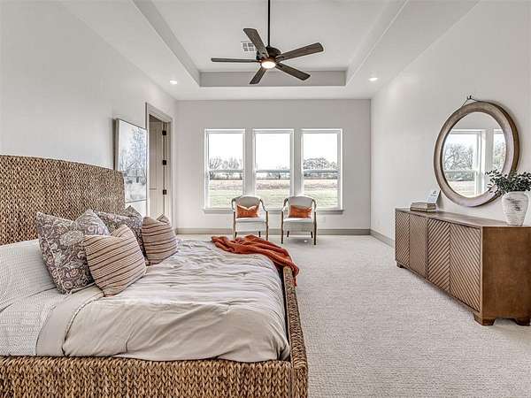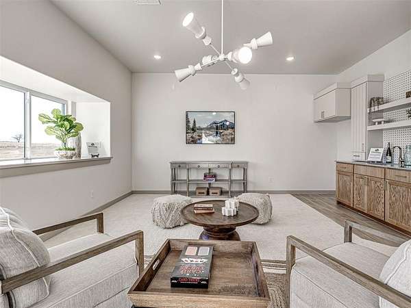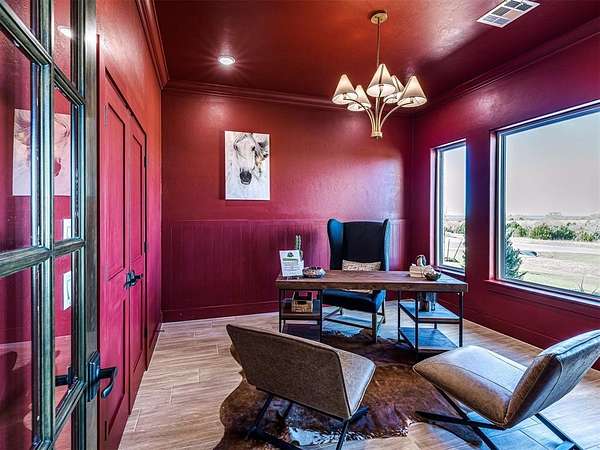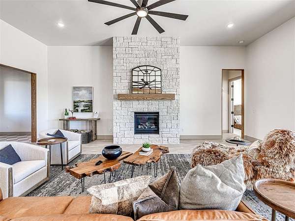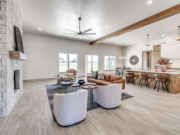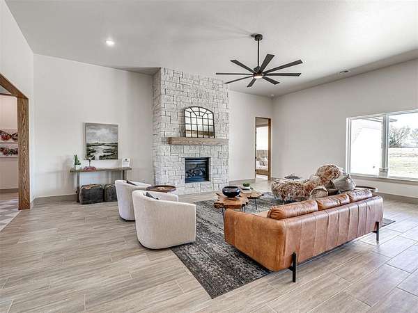 ASK ABOUT CURRENT BUILDER INCENTIVES! Move-In Ready Modern Hill Country Luxury on 1.5+ Acres - Summit Ranch, Goldsby. Experience wide-open living and designer style in this fully staged, move-in-ready home by Manchester Green Homes. Located in Summit Ranch - southwest Norman's newest luxury acreage community - this Arvida plan offers 3,834 sq. ft., 4 bedrooms, and 4.5 baths, perfectly blending modern sophistication with Oklahoma countryside charm. Set on a 1.5-acre lot, this home welcomes you with sweeping western views and a light-filled, open layout designed for entertaining. The dual kitchen islands, Frigidaire Pro double refrigerator, smart double ovens, 5-burner gas cooktop, and large walk-in pantry create a chef's dream space. Thoughtful details include a home office, study, and mudroom, providing flexibility for today's lifestyles. The primary suite features a spa-inspired bath and oversized closet - a peaceful retreat separate from the main living area. Beautifully curated and staged by Studio Tatum Design, the finishes were professionally selected to complement the home's Modern Hill Country architecture. Built using the National Green Building Standard (NGBS) as a guideline, this home offers 35-40% energy savings and exceptional comfort, with foam encapsulation, a Navien tankless water heater, and Low-E Argon windows. Located in Washington School District, just 9 miles from OU, Summit Ranch offers the perfect blend of luxury, efficiency, and space to breathe. Ready for immediate move-in.