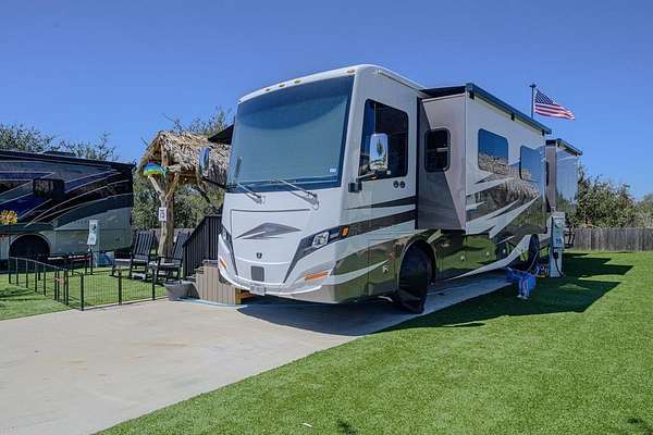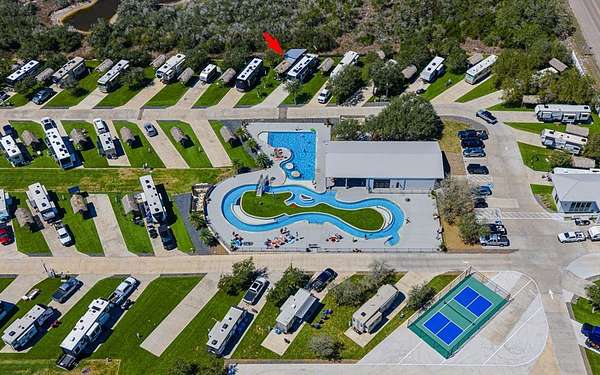 Est $1,580/moA Luxury RV Community located in Aransas Pass and close to both Port Aransas and Rockport beaches! This lot has exceptional upgrades such as Palm Trees, An outdoor storage 12' x 12' Grill Area 7' x 2' -8' a Tiki Bar 11'x 7' and a Palapa 15' x 8' space for 85' TV. Exterior Hardy Plank and Metal Roof. Flooring is TREX flooring. Amenities galore Heated Pool & Lazy River, Fishing Pond, Clubhouse, and a Dog Park, Pickleball Courts, Laundry and many more!