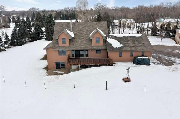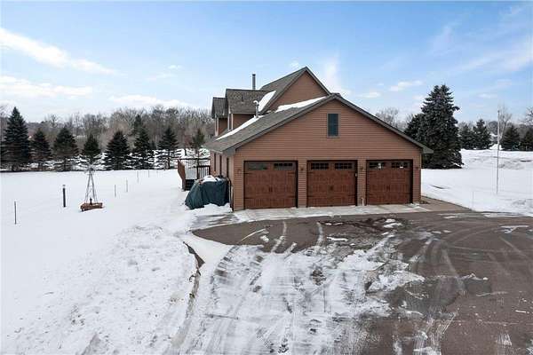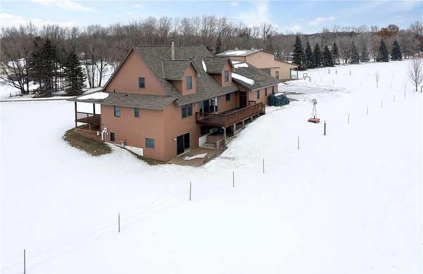 Come and experience a piece of paradise! This stunning hobby farm has an abundance of privacy and is nestled into over 7 acres. It is located on a cul-de-sac and the back of the property borders a wetland area. The property has a wonderful barn that contains a heated shop, large storage area and another area for horses or animals. There is also a lean-to attached. It is currently fenced to accommodate horses. The home is spectacular and has been lovingly cared for by the original owners. The front welcomes you with a wrap around porch. As you enter the two story foyer, you are greeted into the great room which features a stone fireplace and triple wide doors leading out to the expansive deck. The huge kitchen is a chef's delight with a massive island that seats four comfortably. It also includes a walk-in pantry, stainless appliances, and an abundance of cabinets. There is a large dining area adjacent to the kitchen which could host large parties and family gatherings. There is also a primary bedroom suite on this level that overlooks the picturesque back yard. It includes a walk-in closet and private bath with a separate shower, jetted tub and ceramic floor. The main floor office hosts two entrances from the foyer and also next to the primary bedroom. It could be converted to a 2nd main flr bedroom as it already includes a closet. The back hall to the garage has a convenient 1/2 bath and laundry room with a walk-in closet. The upper level includes a large loft area, two extremely large bedrooms and a full bath. The lower level features in floor heat, a large family room, an extensive wet bar with built-in cabinets and walks out to the yard. There is an additional bedroom with double closets and also a wonderful exercise room that will accommodate a lot of exercise equipment. The quaint full bath features a claw foot tub. There are 4 heat sources in this amazing home. There is a heat pump that regulates heat and air conditioning, forced air natural gas, In floor heat in the lower level, and the fireplace is wood burning and will also provide heat. (Note, there is a gas line run for the fireplace so it can be converted to gas). A high end furnace and air conditioner were just installed in the last month. The roof and siding were installed in 2023 with a 40 year industrial shingle and heavy duty vinyl siding. The driveway was also replaced in 2020. This home is a rare find!