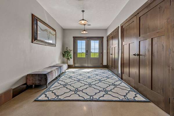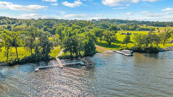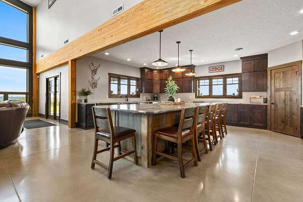 Welcome to Big Stone Lodge-a captivating rustic getaway majestically perched on +/- 3 scenic acres in the quiet community of Shores of Timber Ridge. Built in 2016 this expansive hilltop gem flaunts 5,091 finished square feet and comfortably sleeps up to 24 guests, making it an exceptional opportunity for large groups of families and friends or a phenomenal vacation home. The main level welcomes you with soaring ceilings, massive windows, warm wood finishes, and flows seamlessly between the great room, dining area and expansive kitchen complete with high-end appliances, custom cabinetry, and a large center island. The heart of the home features a floor to ceiling stone gas fireplace with a 20' wall of windows overlooking the valley and lake. The entire main floor, including the garage, boast in-floor heat. The main level also offers 3 spacious bedrooms and 3 bathrooms, large foyer, and an entertaining game room with wet bar, providing space and comfort for everyone. The upper level flaunts 3 bedrooms and 1.5 bathrooms, along with a spacious loft area perfect for games or gathering. The oversized 40' x 30' heated garage is a dream in itself-epoxy floors, hot & cold water, floor drain, and three garage doors for easy access. The game cleaning station in the garage makes life easier for any sportsman looking to take advantage of the incredible fishing and hunting opportunities in the area. The backup generator system (propane-powered) and a central fire and burglar alarm system ensures peace of mind even when you are not there. Relax and unwind on the covered patio, 30 x 30 firepit area, or hot tub-- all with stunning views of the lake. Whether you're watching the sunrise or enjoying s'mores under the stars, every day is a new adventure. Shores of Timber Ridge Amenities: Private boat landing & Marina, Four-season trails for year-round adventure, pickleball, basketball, shuffleboard, and frisbee golf. With quality craftsmanship, serene surroundings, and unbeatable amenities, Big Stone Lodge is more than a home-IT'S PARADISE!