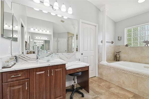 - Ceiling Fans(s), Eat-In Kitchen, High Ceilings, Primary Bedroom Upstairs, Stone Counters, Walk-In Closet(s)