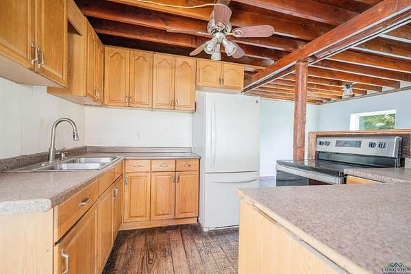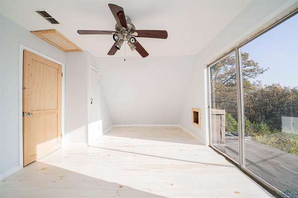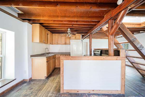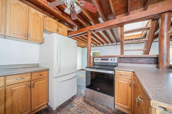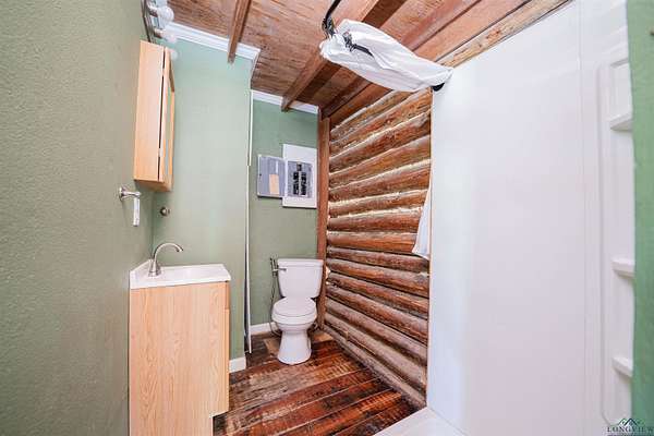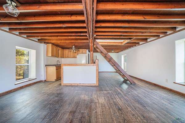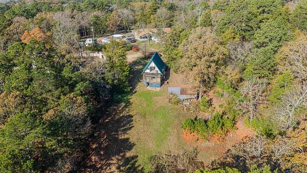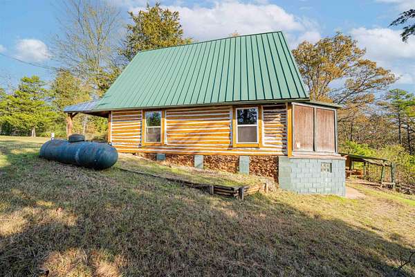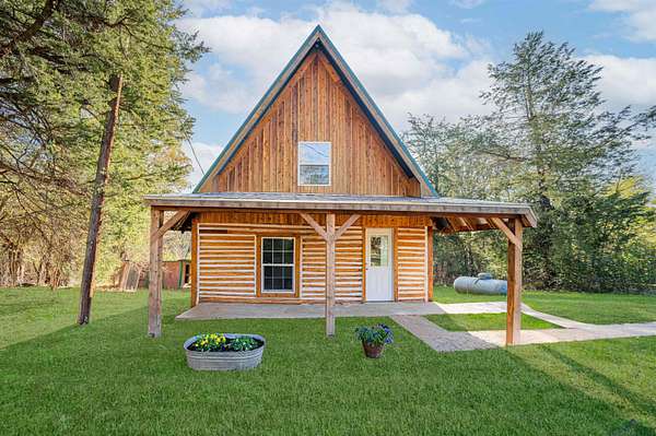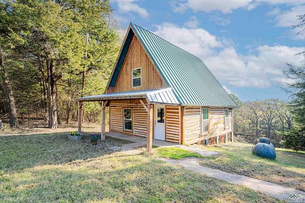 Rare log cabin on acreage in East Texas! Located at the end of a quiet, secluded road, 13312 Mountain View Road offers privacy, character, and opportunity on 3.01 acres, while still being conveniently located near I20 with easy access to Tyler, Kilgore, and Longview. This unique two-bedroom, two-bath log cabin features 900 square feet of living space, a metal roof, and a charming front porch. The backyard overlooks a wooded slope, creating a peaceful, scenic setting that enhances the cabin's rustic appeal. The home has seen some updates, including windows, some fresh chinking, some new drywall, and paint. With a little more work, it's an excellent option for buyers looking to renovate, customize, or add value. With its distinctive log cabin design and private setting, this property holds strong potential as a short-term rental, Airbnb, or weekend getaway. If you're searching for acreage, privacy, and a truly unique property in East Texas, this log cabin is worth seeing. Set up your showing today!
