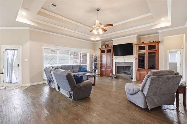 PEACEFUL COUNTRY LIVING AT ITS FINEST WITH CITY CONVENIECES JUST DOWN THE ROAD!! You won’t want to miss this meticulously maintained 1.5 story custom colonial-style home that sits on 2.5 acres with no HOA and Horses allowed!! The property features a 30X40 Workshop with electric & plumbing, RV Parking with RV hookup & waste, a private well (no water bill), a swimming pool perfect for hot Texas summers, and no city taxes!! Inside the home you’ll find beautiful tall ceilings with an open-concept floorplan, hand-scraped hardwood floors, 4 bedrooms + office, huge upstairs game room (pool table will remain with the home), and all the space you’ll need for entertaining! Some of the recent upgrades include: roof replaced in March 2025, fresh paint in several rooms, hot water heater replaced 2021, and pool equipment replaced in 2021. Seller will also leave riding lawn mower with the home!! This home truly provides the best of country living!! Come see it today!!