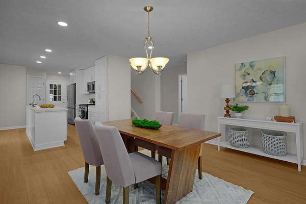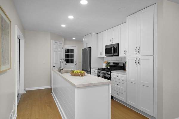 Welcome to this spacious, updated home with room to grow! The kitchen features new white shaker style cabinetry with new countertops, new ceramic tile backsplash, center island, a roomy pantry and all new Samsung stainless steel appliances. Freshly painted interior, new interior doors and all new flooring throughout. A Jr. suite is located on the main floor with the roomy primary suite located upstairs. There are laundry hook ups available on all three floors. There is room to add equity by finishing the daylight level. This space is already plumbed for a 4th bathroom and is designed for a future 4th bedroom and future family room. There is a convenient 1/2 bath in the attached garage as well and an attached fenced in dog run. The 40X60 pole barn has electric and area for drop furnace plus finished office. Spacious new deck, new roof, new windows in the living room are an added bonus. End of culdesac, no association or assoc fees. Located approx. 2 miles to all sports, Jordan Lake