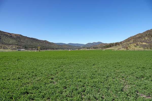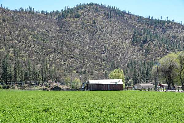 318.2 +/- acre ranch just north of the small town of Fort Jones in far northern California! This scenic Scott Valley working ranch has approx. 219 acres in alfalfa, plus some hill ground. The ranch offers an 1,800 sf, two bed, one bath ranch house with a bonus room/office. One bedroom and bathroom have been remodeled. Outbuildings include a 14,490 sf pole barn (750 ton hay storage capacity), a 4,374 sf wood barn (120 ton hay storage capacity), a 540 sf shop, a 648 sf storage shed, a 525 sf tack shed and a 30 sf oil shed. There are two center pivots, 9 wheellines, 2 guns and 40 handline pipes for irrigation and water is supplied by five ag wells plus a domestic well. Wells range from 250 to 1000 gpm. Approx. 101 acres were replanted in 2023. The ranch is partially fenced and cross fenced with barbed wire and there are wooden corrals, approx 10 years old. Seasonal McAdams Creek and Moffett Creek both flow through the ranch and join on the property. The hill ground borders a 160 acre BLM parcel for hunting and hiking opportunities. There are pretty views of Scott Valley and the surrounding mountains from most of the ranch and it's conveniently close to town for groceries, fuel, schools and other amenities.