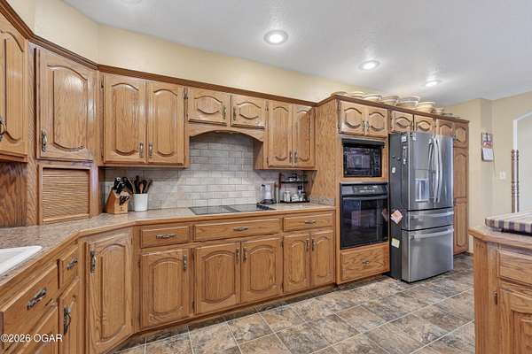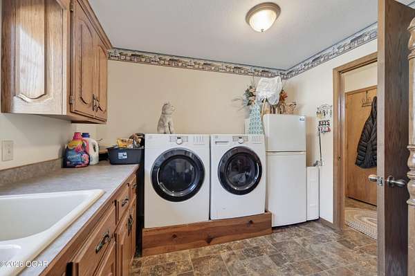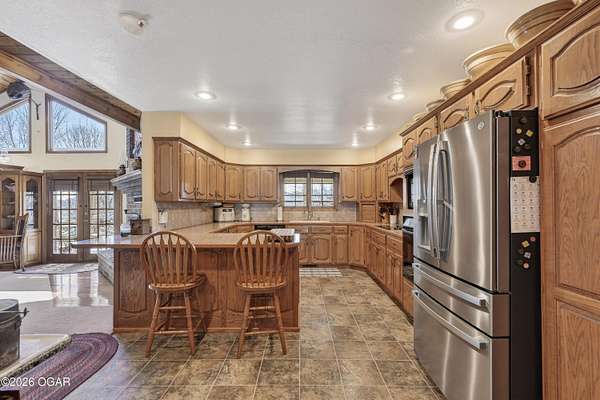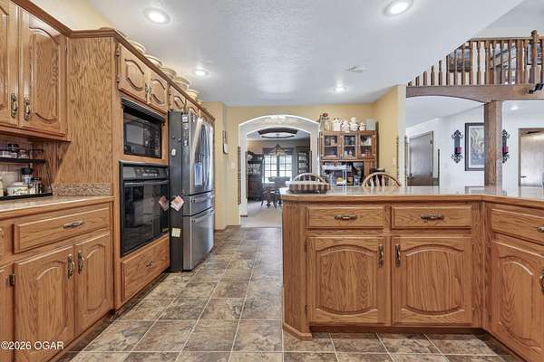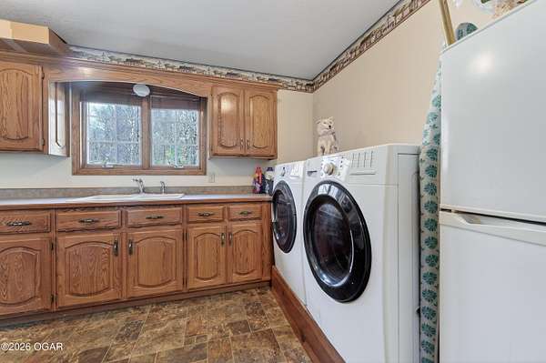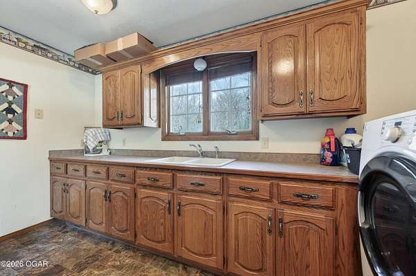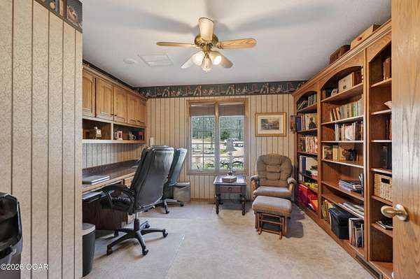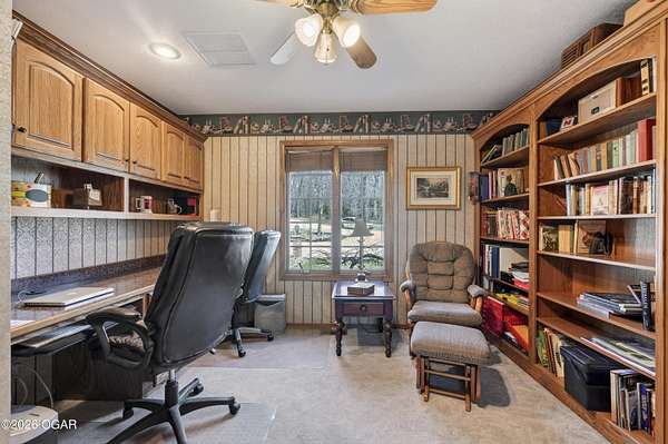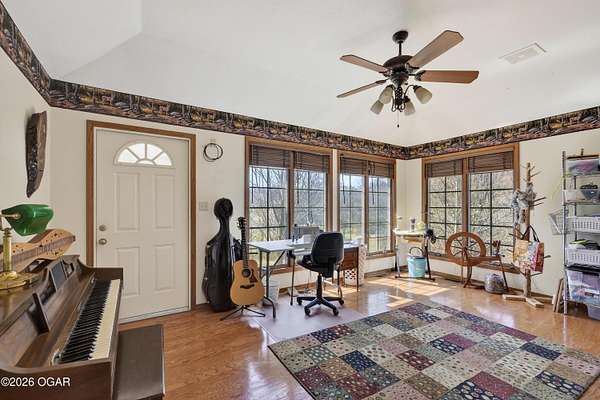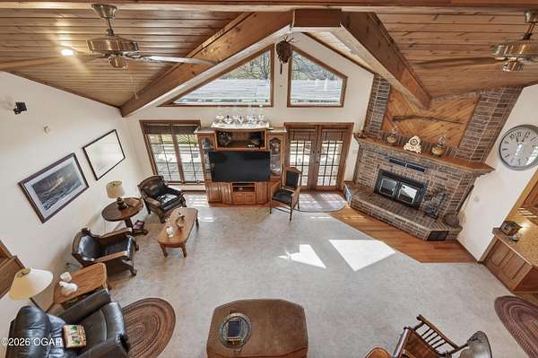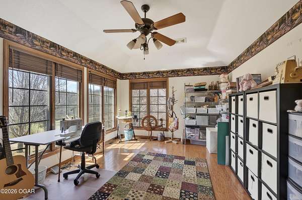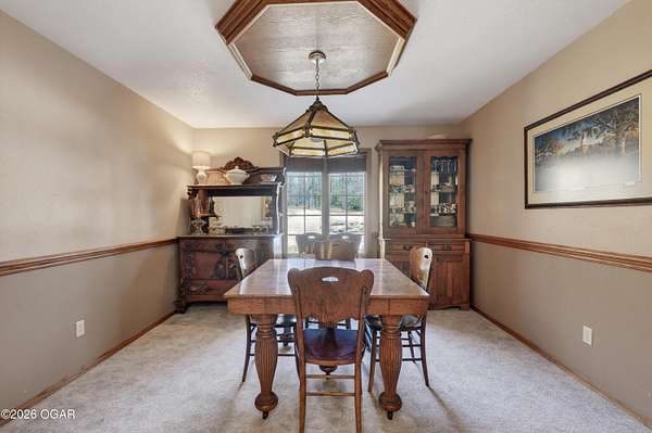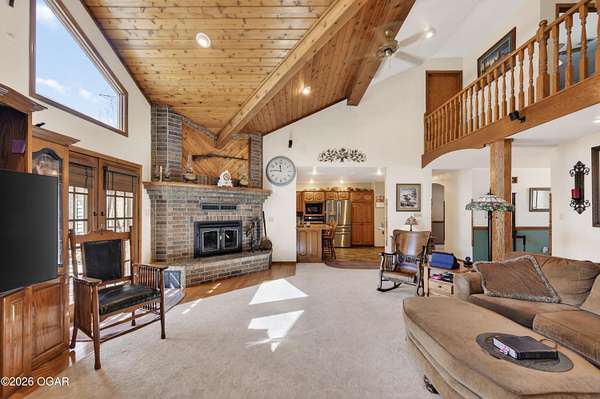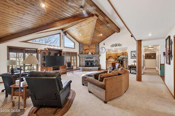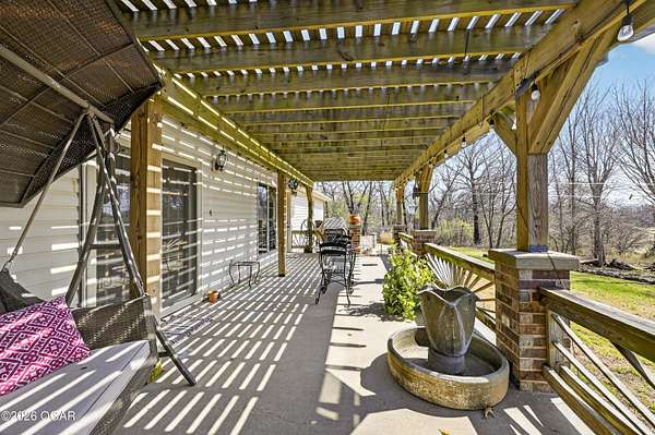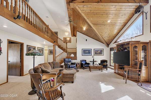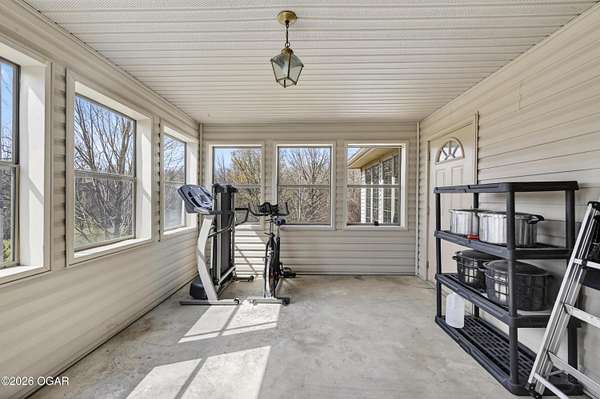 Grand, stunning, and truly stately--this impressive 3,117 sq ft, 3 bedroom, 2.5 bath CUSTOM home sits on 12.1 beautiful acres in Newton County and delivers the perfect blend of privacy, space, and timeless appeal. An impressive gated, paved drive winds through the trees, creating a peaceful, private approach before opening up to reveal this striking two-story home with brick and stone exterior. The electric gate adds both security and a grand first impression. Step inside the welcoming foyer and into a spacious great room featuring a wood-burning fireplace and a stunning paneled wood vaulted ceiling--an eye-catching detail that adds warmth and character. The flexible layout is perfect for entertaining or creating multiple cozy sitting areas. The kitchen is ideally positioned just off the great room-- Seller enjoys the surplus of cabinets. She says, '' It is easy to cook, talk, and entertain, but set back enough so cooking and cleaning is out of view.'' A formal dining room with built-in display cabinetry adds charm and function for gatherings and special occasions. The primary suite offers a true retreat with two walk-in closets, a spacious ensuite bath with walk-in shower and jetted soaking tub. A bonus room--currently used as a craft room--offers versatility as a potential fourth bedroom, second office, or hobby space. A large front-facing office provides a view of front yard and a quiet place to work or study. The oversized laundry room includes a sink, storage, and plenty of workspace. Upstairs, you'll find two spacious bedrooms, a large hall bath, and convenient attic access for additional storage. The basement provides excellent space for organized storage--perfect for canned goods, seasonal decor, and more--and includes an indoor storm shelter for added peace of mind. Off the great room, a large patio with both pergola and a sunroom enclosure creates a dynamic layered outdoor living space. Outside, the property continues to impress with an oversized two-car attached garage, plus a 30 x 60 freestanding shop with two overhead doors and room for 4 vehicles or more! A chicken coop for true country living is Missouri style bonus! Enjoy abundant wildlife and serene views from your back porch, making every day feel like a retreat. As the seller shares, ''I love the long wooded driveway--it feels peaceful and private; the view from the back porch is abundant with wildlife and nature.'' Cozy, warm, and welcoming, this is the kind of property that doesn't come along often--space, beauty, and functionality all in one remarkable setting.