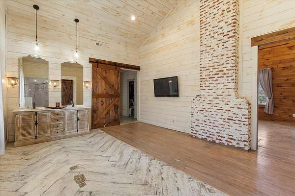 A rare blend of history, craftsmanship, and modern luxury, this 5,654 sq ft farmhouse sits on 2 acres and is thoughtfully built around an original 1850s schoolhouse--complete with its original fireplace, seamlessly woven into the home's design. Soaring 11-foot ceilings, custom pine floors, and nearly 1,875 square feet of covered porches designed for year-round living, including a wood-burning outdoor fireplace.
