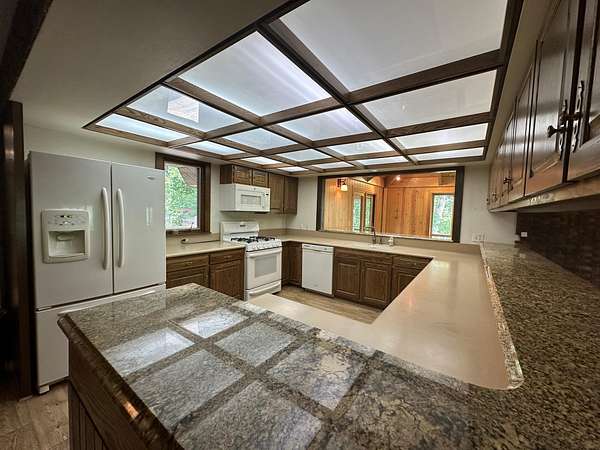 A Gaylord home like no other. This iconic Michaywe home is a sprawling ranch home on 2+ acres. Features 3 large bedrooms including two 'en suites. Substantial primary suite w/ heated bathroom floors & on-demand hot water. Home features 2 living rooms & huge family room w/ tongue & groove ceilings & skylights, 2 fireplaces. Large formal entrance w/ stained glass. Large granite kitchen. Natural gas 2-zoned forced air furnace. Large decks to take in the nature & landscape. Attached/heated garage w/workshop and TONS of storage including full attic w/stairs. A second 22x27 garage for all the toys. Gorgeous, aluminum fenced natural exterior (no mowing!). Fully functional koi-ponds. Huge bonus basement has walk-out greenhouse & tons of room to store everything needed to maintain this estate.