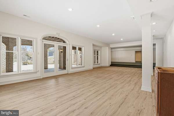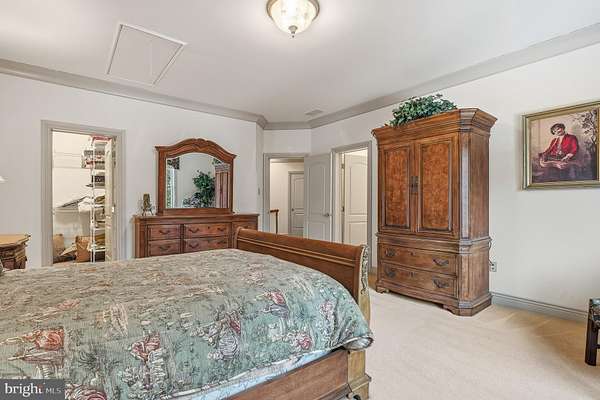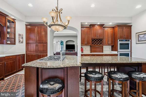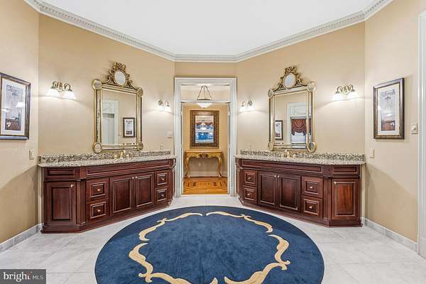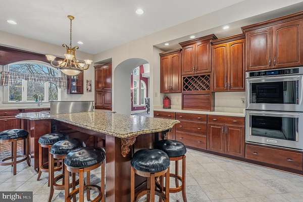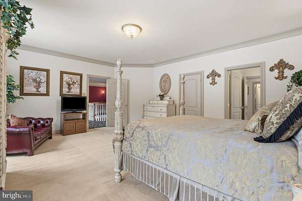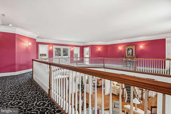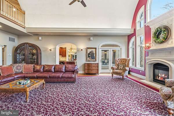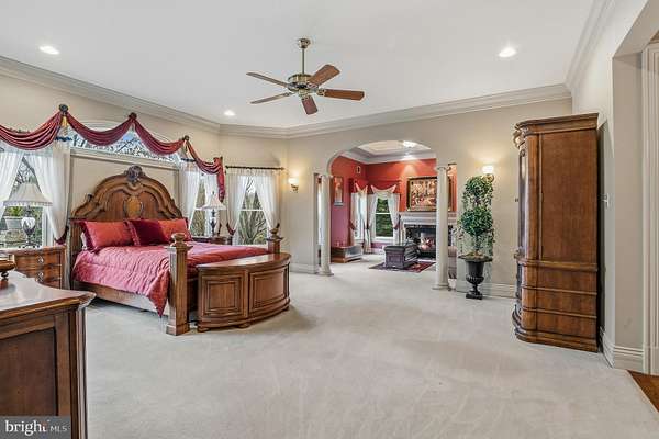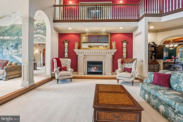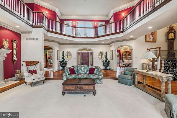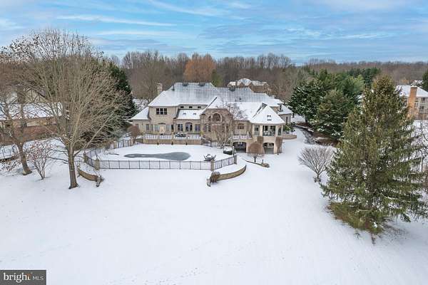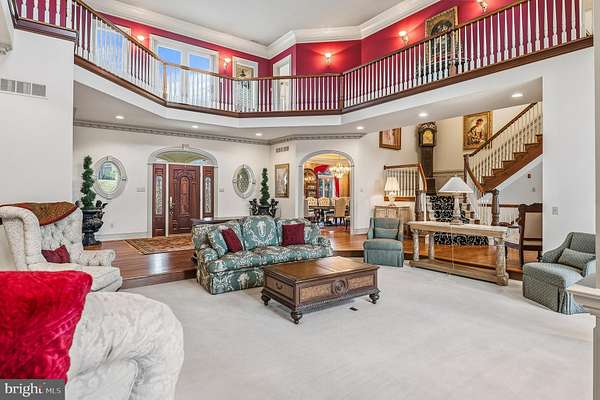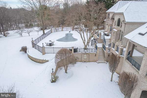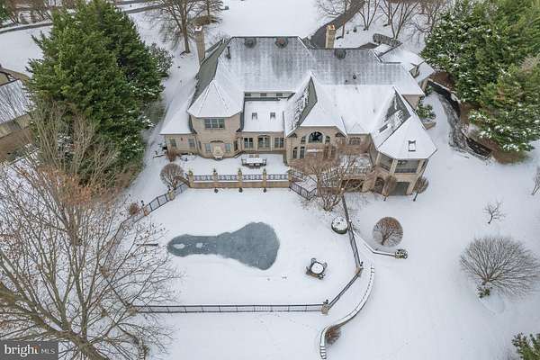 This custom-built brick estate offers exceptional craftsmanship and superior finishes throughout more than 12,000 square feet of living space. Privately situated at the end of a cul-de-sac on a picturesque 3.53-acre lot in the coveted Ridgewood community, the property features a heated in-ground pool and scenic views of a private pond. Inside, ceilings ranging from ten to twenty feet showcase an array of architectural treatments, including tray, vaulted, and barrel designs. The home is richly appointed with five cast stone fireplaces, dual staircases, custom mouldings, window treatments, pillars, and graceful arches. The main level is highlighted by a grand great room, a sun-filled solarium, and a stately library. The primary suite, also located on the main level, features Alabaster light fixtures, dual vanities, a jetted tub, a roll-in ceramic shower, and four walk-in California closets. The fully equipped and expansive kitchen is outfitted with a granite center island, quartz perimeter countertops, Cherry cabinetry, dual sinks, and ceramic flooring, opening to a bright breakfast room with access to the covered porch and slate patios. The upper level offers a wraparound interior promenade connecting five bedrooms, three full baths, an Azek patio, a second laundry room, and a cedar-lined storage room. The walk-out lower level includes a media room, game room, family room, half bath, and substantial unfinished space-well suited for an apartment, in-law or au pair suite. Hallway walk-in closets are roughed-in and vertically aligned to accommodate a future three-level elevator. Parking is plentiful with a three-car garage and an additional heated, oversized one-car garage with direct access to the basement. The home is serviced by a private well and septic system, five separate oil-fueled HVAC systems, and 600-amp electrical service. Conveniently located near highly rated schools, the property offers easy access to downtown Washington, DC, Baltimore, Annapolis, and Frederick, as well as close proximity to BWI, NSA, NASA, MARC rail, and major transportation routes.