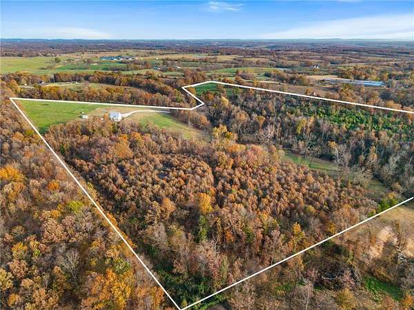 Welcome to your private paradise on 40 acres of spectacular rolling land and nestled on top is your home - modern farmhouse. Enter the property onto a long, scenic driveway that crosses an open valley and ascends to the hilltop, unveiling seclusion and privacy. This expansive property is a true masterpiece of nature, featuring rolling pastures, mature trees, and a spring-fed pond. As the sun dips below the horizon, the home's unique hilltop placement offers unrivaled, breathtaking sunset views-a perfect end to every day. The possibilities here are as vast as the landscape: a dream hobby farm for families, an ideal equestrian haven with room to roam, a stunning backdrop for an event center or the ultimate peaceful weekend retreat. The entire perimeter is fully fenced and 3 acres are dedicated with cross fencing. Enjoy the serenity of the countryside with unmatched access. You are only 12 minutes from XNA Airport, and a short 35-minute drive connects you to the corporate hubs of Walmart (WM) and Tyson Foods.