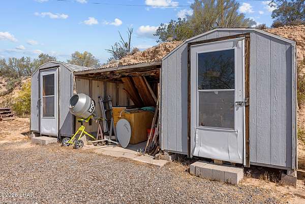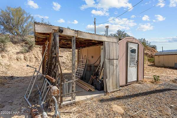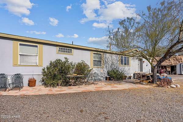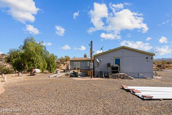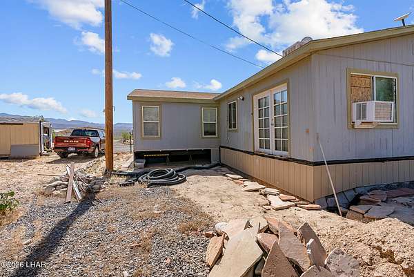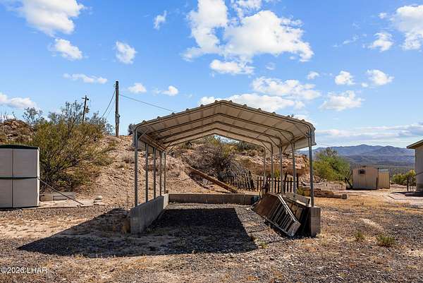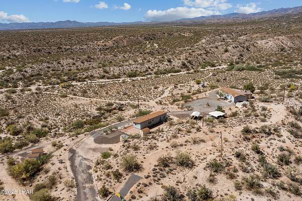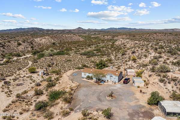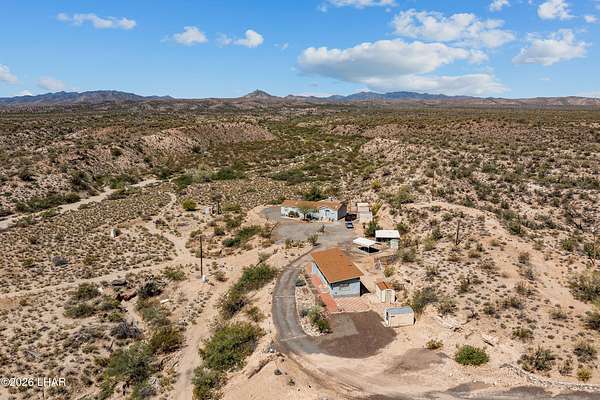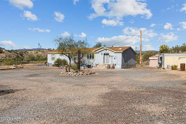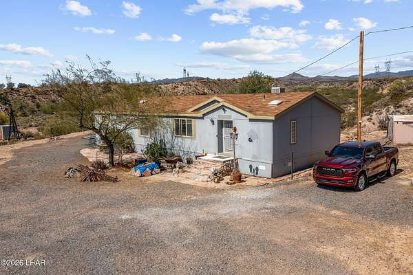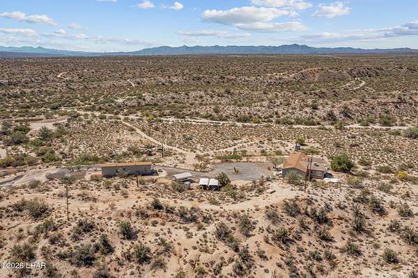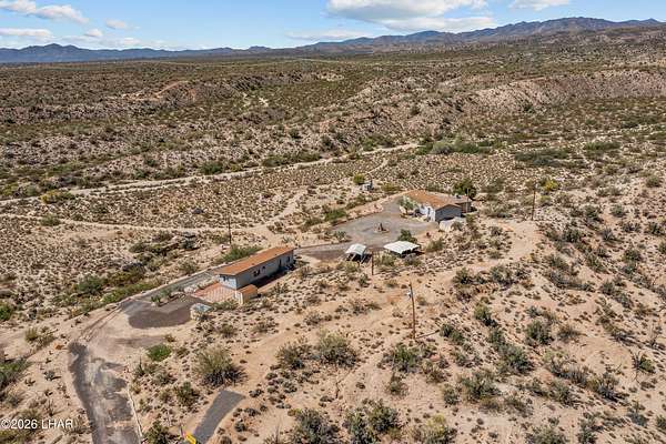 20-Acre Private Mountain Retreat with 2 Homes & Stunning 360 degrees Views! This unique high-desert property offers total independence with 2 private wells (350+ ft deep) and 2 septic systems. The main residence is a 2005 manufactured home featuring a spacious 1,748 sq ft split floor plan, enhanced by a permitted 878 sq ft stick-built addition (2007)--totaling a massive 2,626 sq ft! The addition provides a large family area, while the main home boasts a kitchen island and a laundry room with space for extra plenty of extra pantry space or storage. The separate 840 sq ft guest house (1973) includes 2 beds, 1 bath, and its own utilities, making it perfect for multi-generational living or rental potential. Enjoy incredible sunrises and sunsets from your wrap-around mountain landscape. Infrastructure includes 3 carports, multiple sheds, and a nice gravel driveway with easy highway access at Mile Marker 114. Whether you are an outdoor enthusiast looking for direct trail access for quads and hiking, or seeking a peaceful homestead less than an hour from Kingman and 2 hours from Phoenix, this 20-acre retreat delivers space and spectacular views in every direction.
