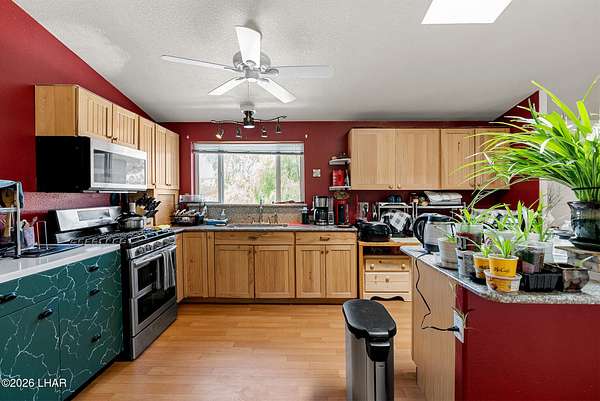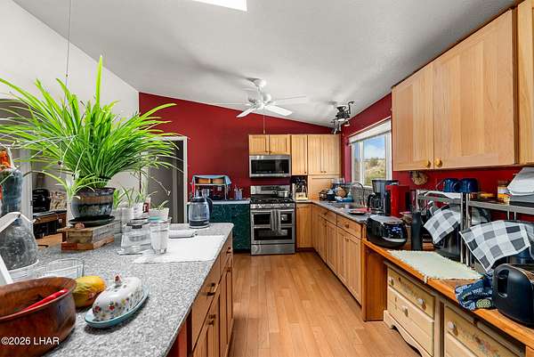 - Breakfast Bar, Ceiling Fan(s), Counters-Solid Surface, Kitchen Island, Vaulted Ceiling(s), Walk-In Closet(s)