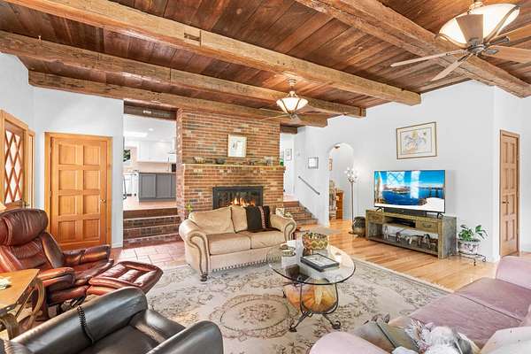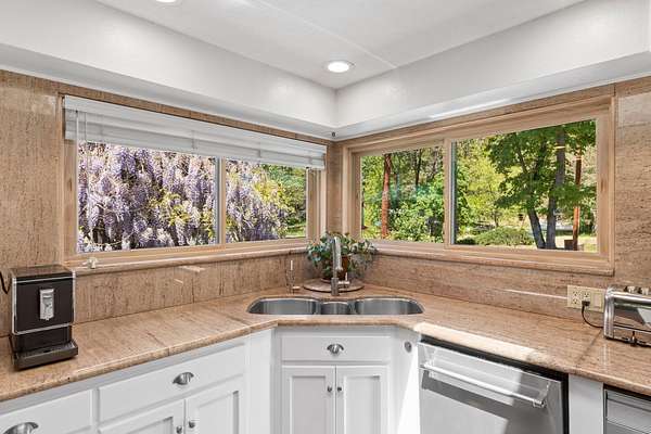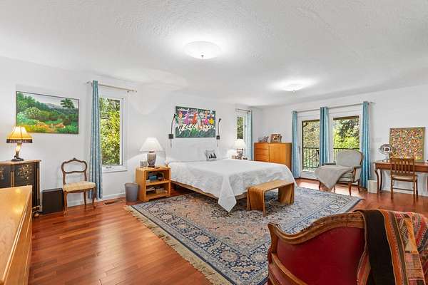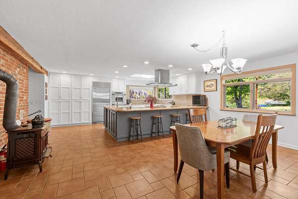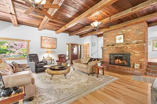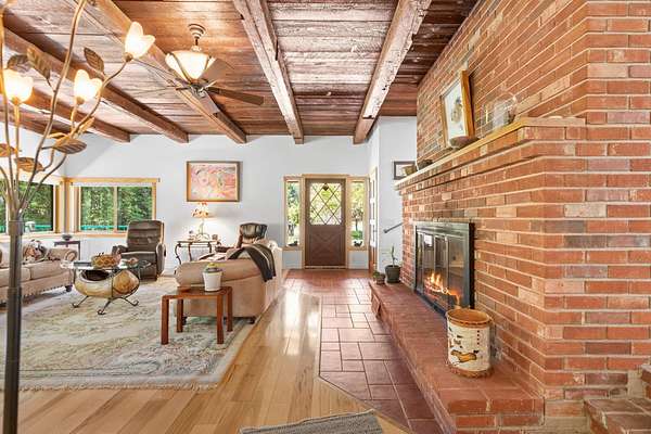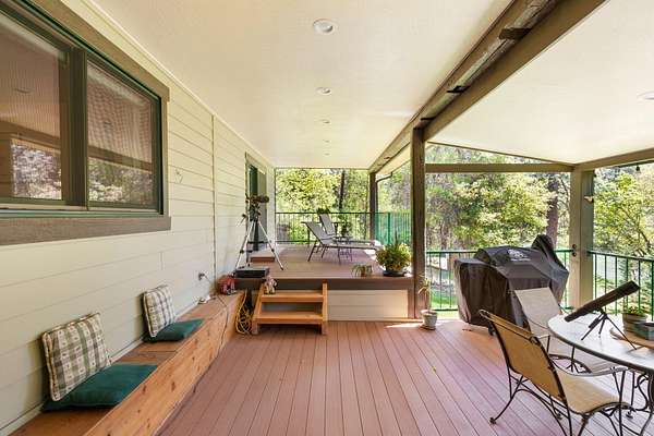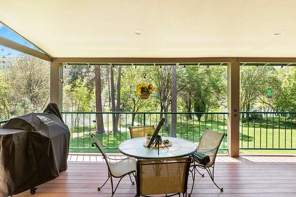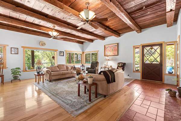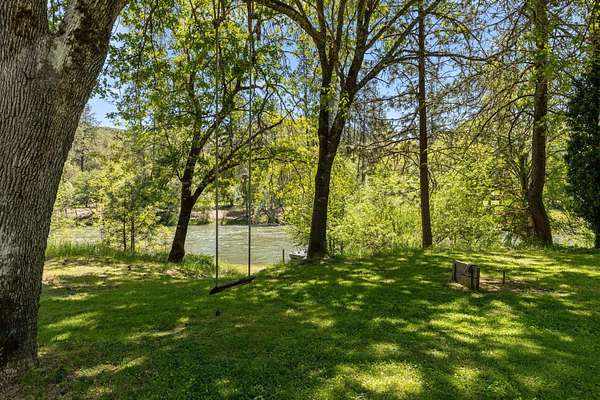 Experience one of the most breathtaking riverfront properties just minutes from Medford and Grants Pass, featuring a private gated entry into a stunning setting with a large irrigated lawn leading to the river and a private legal boat dock, perfectly positioned between 2 waterfalls with no powered boats. Extensively updated with quality finishes throughout, this home offers an excellent floor plan with 2 bedrooms on the main level and a 3rd downstairs. The primary suite showcases incredible views, dual closets, Brazilian wood floors, heated tile, jetted tub, and steam shower. Gourmet chef's kitchen with granite, Thermador appliances, Sub Zero fridge, and double ovens. Vaulted wood beam ceilings, hickory floors, custom finishes, laundry room, view deck, oversized garage, greenhouse, shop, fruit trees, irrigation rights, and artesian well. New high end HVAC, finished insulated attic not included in SF, plus wine cellar and lower level living with separate entrance. Must tour!