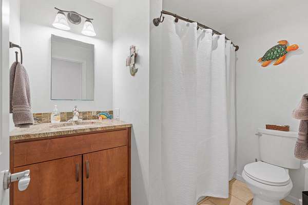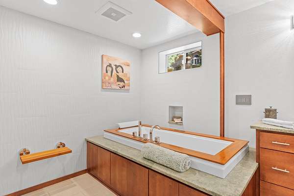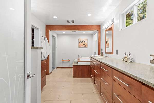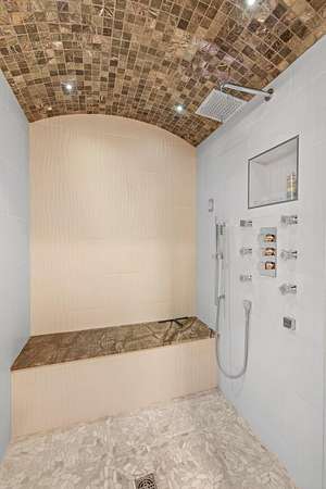 - Breakfast Bar, Ceiling Fan(s), Double Vanity, Granite Counters, Kitchen Island, Linen Closet, Open Floorplan, Pantry, Primary Downstairs, Shower/Tub Combo, Soaking Tub, Tile Shower, Walk-In Closet(s)