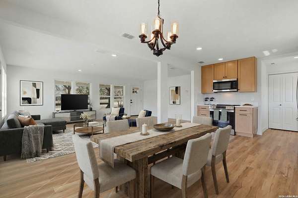 Welcome to your own slice of Texas Hill Country paradise - where peaceful riverfront living meets modern, turnkey comfort with stunning Medina River frontage and breathtaking views. Nestled on 1.99 private perimeter fenced acres along the river, this beautifully updated home offers the perfect blend of nature, privacy, and thoughtful upgrades. Whether you're looking for a full-time residence or weekend getaway, this property delivers a lifestyle that's hard to find. Mature pecan trees on the property provide pecan treats throughout the year as well! Step inside to discover a completely renovated interior, featuring new flooring throughout, fresh interior paint, and custom-built closets that maximize both style and function. The heart of the home is the gourmet kitchen, living and dining space, fully updated and designed for gathering, entertaining, and everyday enjoyment. Major system upgrades provide peace of mind, including brand new central AC and heat (2025), new roof and siding (2025), plus new windows and doors - making this home as efficient as it is beautiful. Outside, enjoy the serenity of your private acreage with room to roam, relax, or explore down to the river. A newly built parking area, 2-car carport, and storage shed add convenience and functionality to the property. If you've been dreaming of quiet mornings by the river, star-filled Hill Country nights, and a home that needs nothing but you-this is it!!! Schedule your showing today!