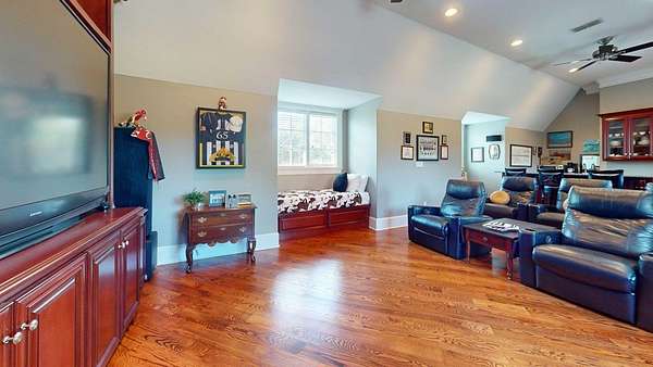 Waterfront Luxury Home with Backyard Oasis- Welcome home to 1333 Gatlin Creek Road, a private Thomas County retreat where luxury, comfort, and everyday living blend effortlessly. Set on nearly 3.5 acres with shared access to a beautiful 5-acre pond, this meticulously maintained 4-bedroom, 4.5-bath home welcomes you with a circular front drive and invites you into a lifestyle that feels both elevated and warmly familiar. From the moment you step inside, the rich hardwood floors, custom millwork, and thoughtful architectural details create a sense of timeless Southern elegance. The formal dining room sets the tone for holidays, special dinners, and celebrations that flow easily throughout the home. The spacious living room, anchored by a gas fireplace and surround sound, becomes the heart of daily living-cozy on quiet evenings and perfect for gathering with friends and family. The chef's kitchen is where the magic of everyday moments happens-morning coffee at the breakfast room windows, meal prep on expansive cambria countertops, and hosting made easy with cherry cabinetry, a large island with vegetable sink, bar seating, brick backsplash, built-in oven and microwave, and a huge walk-in pantry. This kitchen was designed for living, gathering, and feeding the people you love. Two bedrooms sit on the main level, including the luxurious primary suite-your personal retreat. With two oversized walk-in closets, a spacious sitting area opening to the pool and covered porch, and a spa-like bath featuring double vanities, makeup area, and tiled walk-in shower, it's a sanctuary you'll look forward to coming home to. Upstairs, the home transforms into the ultimate entertainment space. A massive game room/mancave offers a bar/kitchen area, theatre seating, built-in entertainment center, two built-in twin beds, and surround sound-perfect for family movie nights, big games, holiday parties, or the coolest sleepovers in town. This level also includes loads of attic storage, keeping everything organized and out of sight. Then there's the outdoors-the part that truly sets this home apart. Step outside to a saltwater inground pool, fresh pool decking, built-in gas grill, firepit, and a wide-open yard framed by a beautiful shade oak. It's your personal oasis for summer afternoons, fall bonfires, and quiet moments at the end of the day. And just beyond the yard lies the 5-acre fishing pond, stocked and ready for memories. Picture slow, peaceful mornings casting a line as mist rises off the water, kids catching their first bream off the bank, or easy Sunday afternoons reeling in bass while the sun sets behind the trees. It's the kind of simple, grounding joy you can't buy in a neighborhood-your own private escape where every cast feels like a reset. With a brand-new roof, triple-car garage, office, downstairs laundry, and easy access to Publix, Lowe's, restaurants, schools, and downtown Thomasville-just 10 minutes away-you get privacy, convenience, and luxury in one perfect location. This is more than a home. It's a lifestyle-quiet mornings by the pond, unforgettable gatherings in the game room and backyard, room to breathe, and the comfort of knowing this is where your best memories will be made.