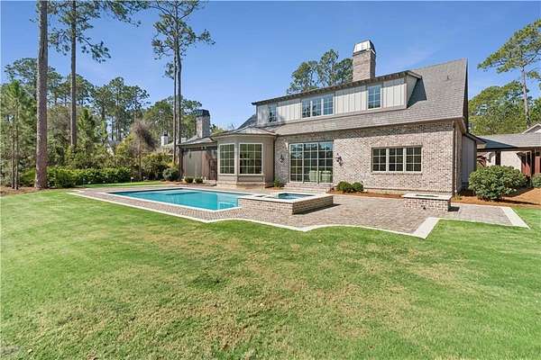 Step into a world of refined elegance with this stunning lakefront estate in the exclusive gated community of Frederica Township. Perfectly situated near the resident entry gate for ultimate convenience, this 4-bedroom, 5.5-bathroom home offers 5,319 square feet of meticulously designed living space on a sprawling 1.52-acre lot. The exterior of this home features classic tabby, crafted with full oyster shells for timeless coastal charm. Designed with both style and function in mind, this home boasts 12' ceilings on the main floor and a spacious 4-car garage. The open floor plan seamlessly blends indoor and outdoor living, highlighted by breathtaking views of the tranquil lake. Venture outside to your private oasis, where a sparkling pool and hot tub await. Relax on the tanning shelf or entertain guests in this luxurious outdoor retreat. Whether you’re enjoying a peaceful evening under the stars or hosting a lively gathering, this space is sure to impress. Every detail of this residence exudes sophistication, offering the perfect combination of luxury, privacy, and convenience.