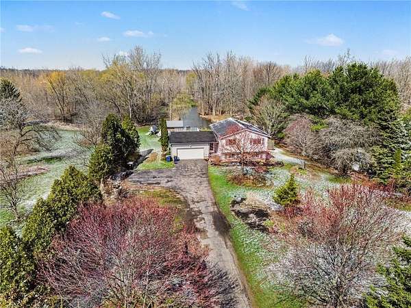 Peaceful country living on a private 4.93-acre wooded lot in the Wayne School District! This 3-4 bedroom, 2 full bath home offers flexible living space with a walk-out basement that can serve as an in-law setup, teen suite, or additional living area. Features include an eat-in kitchen, spacious living room, and hardwood floors. Sliding glass door leads to a patio overlooking a beautiful stocked pond-ideal for relaxing or enjoying nature. Updates include roof (2014) and on-demand Rinnai water heater. Property also features a 2-car garage, shed, outbuilding, raised garden and above-ground pool. Rear portion of lot is designated federal wetland, offering added privacy and potential tax benefits. Unique property with many possibilities-don't miss this opportunity!