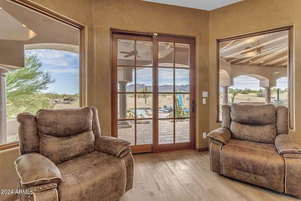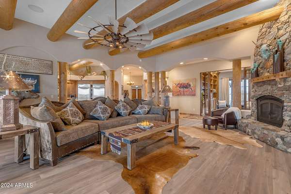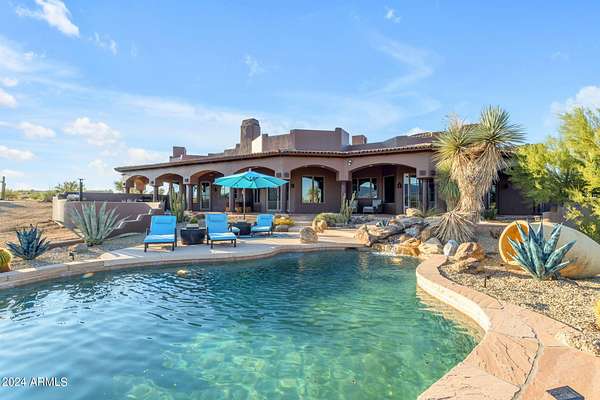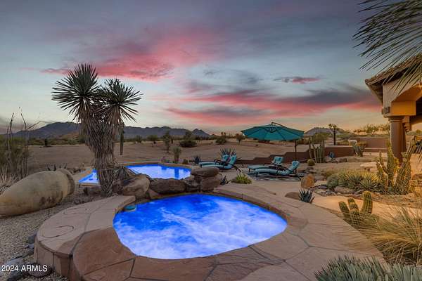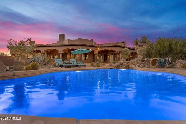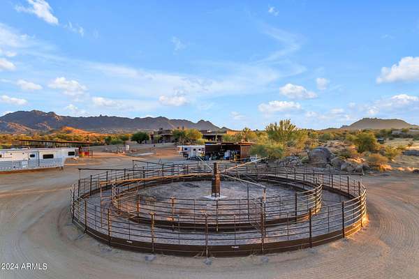MOTIVATED SELLERS! One of the LAST LARGE parcels available at 20 ACRES in the City of Scottsdale that abuts the McDowell Mountain Park. You will not find better views or a more peaceful setting than this prime desert location! Located near Scottsdale's iconic landmarks. Located directly adjacent to the McDowell Mountain Preserve and at the end of a paved, dead end road, you will find this stunning, pristine lot covered with the boulders that make the McDowell mountain park region unique. These formations are part of the broader landscape of the Sonoran Desert, which is known for its dramatic geological features. The combination of the desert environment with these ancient, weathered granite boulders creates a unique ecosystem and visual experience. The proximity to McDowell Mountain Park means that outdoor enthusiasts have direct access to miles of non motorized trails for hiking, biking, and trail riding right from their doorstepAt the heart of this exquisite parcel is a 4,700 square-foot custom home designed to complement the surrounding environment. The home features a new roof and expansive windows & doors in every room to the outdoor living spaces that takes full advantage of the breathtaking 360' views of the Four Peaks, Granite Mountian, McDowell Mountain Range and the surrounding desert landscape. The architecture includes elements like stone and wood, harmonizing with the natural terrain. The master bedroom, complete with its own fireplace, has its own exit to the pool and spa which overlooks Tom's Thumb while the guest room and attached casita open to the north patio to take in the views of granite mountain. Views are amazing from EVERY room. The great room, chefs kitchen and custom wet bar ensure plenty of space for entertaining or just enjoying the cozy fireplace. Additionally the large and fully equipped attached casita is perfect for family or out of town guests with their own access to enjoy your time with them but allows everyone their own space. Head outside to find the 12 stall mare motel with 60' runs, lights and automatic waterers located right next to the 8 horse Priefert walker. Also noteworthy is the BRAND NEW, high producing well!! The arena is huge at 150 x 300 with new footing and plenty of parking for trailers if your friends come over to rope, trail ride or just hang out. This area is surrounded by upscale communities, with nearby luxury homes and ranch estates that take full advantage of the natural beauty and privacy the desert offers. While the setting provides a peaceful retreat, the property remains conveniently located just minutes away from world-class golf courses like Troon North, Desert Mountain, and Estancia and is just a short drive from Scottsdale's fine dining, boutique shopping, and cultural attractions, ensuring that convenience meets tranquility in this desert oasis.
