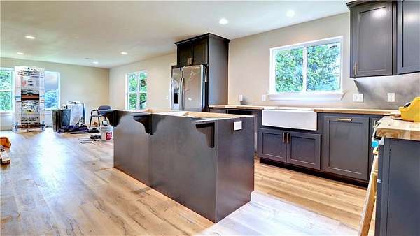 Fully remodeled 1248 sq ft home on 14.87 acres on paved road. Outstanding property to live in the country- just minutes from shopping and entertainment districts. Remodeled 3 bedrooms and 2 full baths. New sheetrock, paint, flooring, trim, doors and windows. New Kitchen cabinets and counters. New appliances. New Water Heater Rolling hills and open grass areas. Wonderful views and open spaces for building your dream home or family estate. Easy access to new 412 bypass and XNA airport. Public gas and Electric available. Home remodel in progress to be completed August 2025