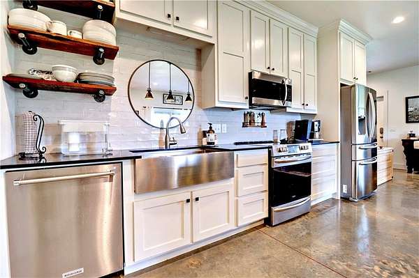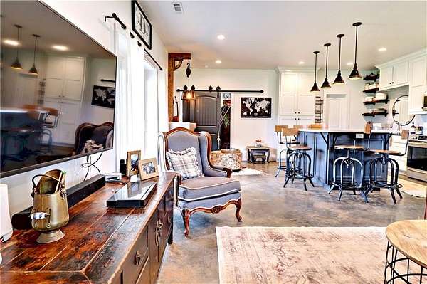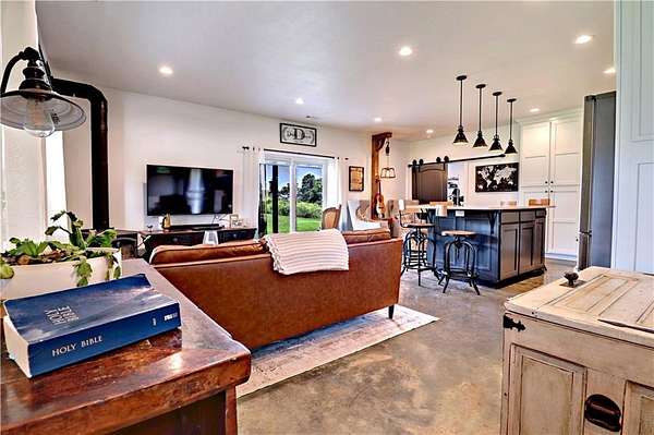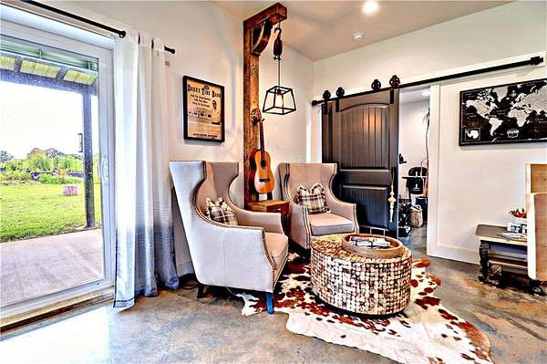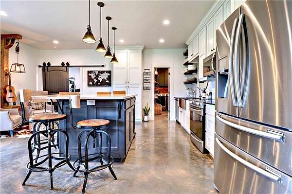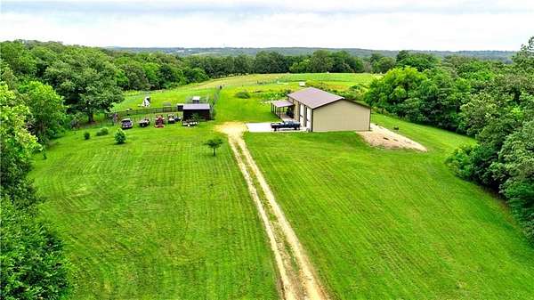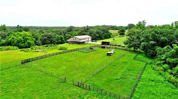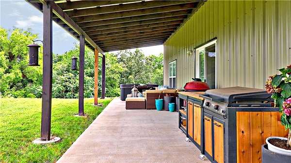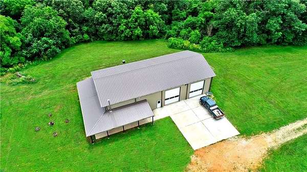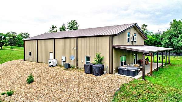 Barndominium on 21.33 acres on Paved road. Outstanding property to live in the country- just minutes from shopping and entertainment districts. 1920 living space with 3 bedrooms, 1 1/2 baths. One bedroom on main level and 2 bedrooms on second level. Granite counters, concrete floors main level and carpet on second level. Open kitchen and living area, and Large covered patio to entertain family and friends. Heated shop has 16 ft walls and high ceilings with lots of room for storage. Access to half bath from shop. 2- 12x14 ft overhead doors. Foam insulation. Property has a few out-buildings and some fencing. Rolling hills and open grass areas. Wonderful views and open spaces for building your dream home or family estate. Easy access to 412 bypass and XNA. Public gas and Electric available.