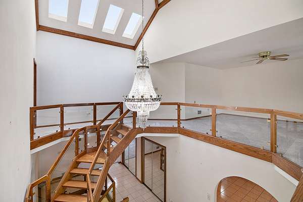 This expansive all-brick two-story home offers over 4,000 sq ft of finished living space, including a fully finished basement, and sits on just under two acres of beautifully maintained land. A long, private driveway creates a grand approach and sets the tone for this impressive property. The main level features two generously sized bedrooms, including a primary suite with a private full bath and walk-in shower. A second oversized bedroom is conveniently located near a spacious hallway bath with a walk-in shower and jacuzzi tub. The large kitchen is designed for both everyday living and entertaining, offering granite countertops, a center island, hardwood floors, and an adjacent eating area. Just off the kitchen, the sunroom provides abundant natural light and direct access to the expansive backyard. Upstairs, an open loft overlooks the main living area and leads to a private balcony. Two additional bedrooms complete the upper level, including an oversized room that could easily be converted into two bedrooms. Skylights enhance the bright and open feel throughout the second floor. The finished basement adds incredible versatility with a second kitchen, laundry area, wet bar, additional rooms ideal for office or guest space, a fireplace, and a large recreation area perfect for entertaining or extended living. Offering space, privacy, and endless possibilities, this home is ideal for multi-generational living, entertaining, or those seeking room to grow.