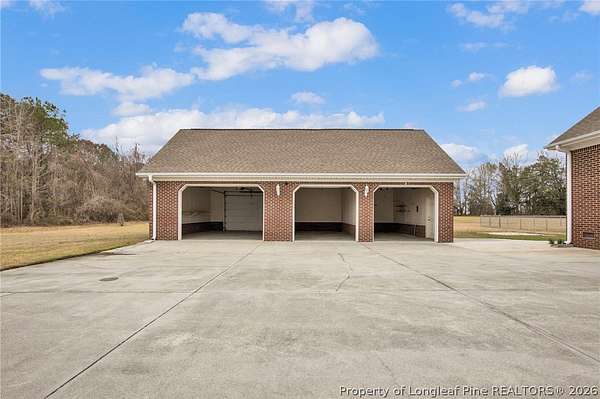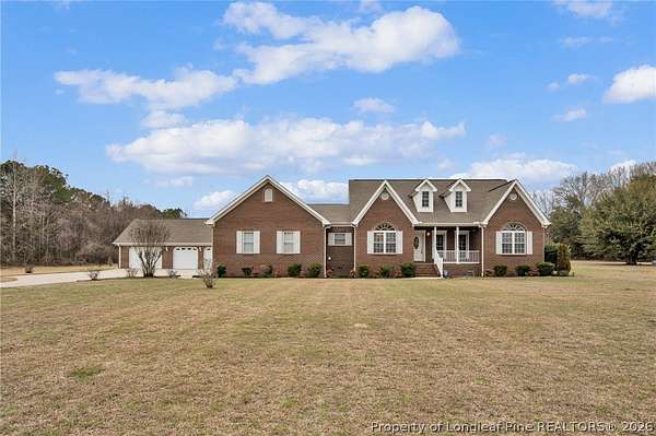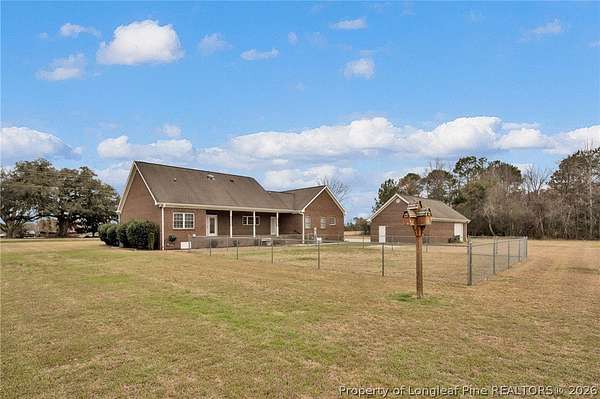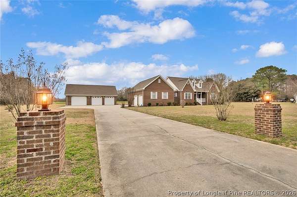 One-owner brick home on 2.31 acres of usable acreage in Lumberton with a detached garage, workshop potential, and peaceful rural views! This well-maintained property offers space, privacy, and comfort while still providing convenient access to town. Two parcels are being sold together, with the home situated on 1.30 acres and an additional 1.01-acre parcel directly attached to the backyard, creating expanded outdoor space and flexibility. Built in 2004-2005, the home features a welcoming front porch, spacious living areas, and a cozy gas-log fireplace perfect for relaxing evenings. The Trane HVAC system has been professionally serviced annually, providing dependable comfort year-round. The interior has been freshly painted, creating a bright and inviting atmosphere throughout. The primary suite features a relaxing jetted tub and a spacious walk-in closet with a shoe rack, adding both comfort and functionality. The home also includes beautifully maintained shrunks that provide additional storage and character. Step outside to enjoy the covered back porch overlooking open land, ideal for entertaining, gardening, or simply enjoying the peaceful rural setting. The property also includes a partially fenced yard perfect for pets, along with a very well-producing blueberry bush, a mature pecan tree, a beautiful flowering crabapple tree, and azalea bushes that add seasonal color to the landscape. Additional highlights include county water service, a septic system that was recently pumped, CO2 detectors, and an ADT security system. The property also offers exceptional parking with a 3-car detached garage in addition to the attached 2-car garage, providing 5 total garage spaces, along with attic storage in the detached garage for added convenience. Located in Lumberton with convenient access to shopping, dining, and major highways, this property offers the perfect balance of acreage, privacy, and convenience.