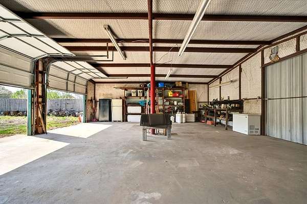 The property is fully equipped for work and play, featuring a spacious oversized workshop-garage with electricity, a storage building, a 2-car carport, and plenty of space to create your dream garden.