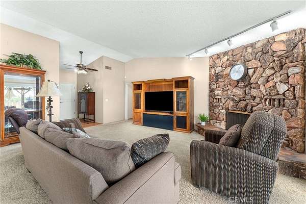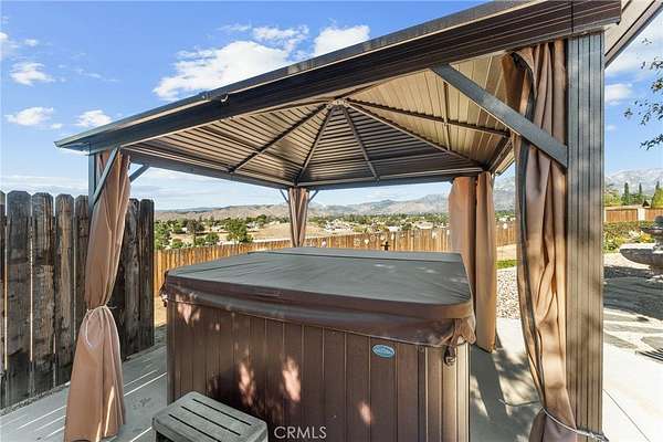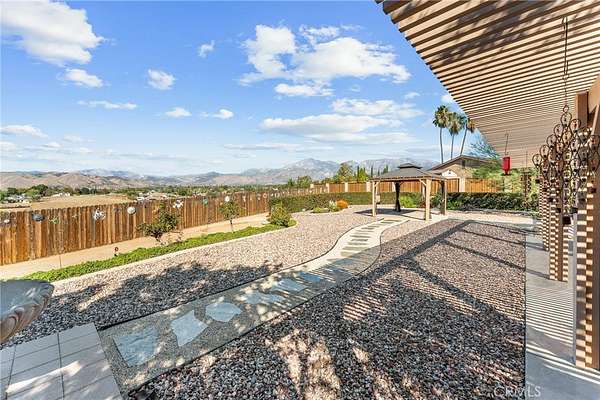 Prepare to be mesmerized by the view from this spacious single-story solar Home with 24K gas generator back-up. Panoramic views of the Mountain Range, Yucaipa Valley and Inland Empire. The view is especially spectacular as the light shifts throughout the day. During winter you will see brilliant white snow capped mountains. This is the backdrop for your residence, where you'll feel right at home from the moment you step inside. The heart of the home is the great room, featuring a massive fireplace, perfect for cozy gatherings on chilly evenings. The dining area and eating bar are perfectly positioned to ensure every meal is accompanied by the awe-inspiring view. The updated kitchen is a chef's delight, and its spectacular views even make doing the dishes a pleasure. This home offers three comfortable bedrooms, plus a versatile room that can easily be a fourth bedroom, a den, or a creative studio/study or music room. The primary ensuite is a restful retreat, boasting an ensuite bath and easy access to the outdoor spa. Step into the backyard and discover an entertainer's dream. The huge, covered aluminum patio is the ideal spot for your morning coffee or afternoon tea while soaking in the stunning scenery. The expansive hardscapes, walkways, and a beautiful fountain create a tranquil and beautiful outdoor space. With over 1.57 acres of land, you can explore possibilities for your own vineyard, orchard, or additional gardens or workshop. This property is a hobbyist's dream, featuring a greenhouse for the green thumb, a gazebo for peaceful moments or a beautiful setting for a special events. Fruit trees, including lime, orange, and lemon. Plenty of space for your own vegetable garden. A three-car garage and abundant parking. Two designated RV parking areas with 30-amp hookups. The story continues beyond the rear gate, where additional land with separate road access awaits. This provides endless possibilities, from creating a workshop, adding an Accessory Dwelling Unit (ADU) or having a barn with horses. The choice is yours. This isn't just a house, it's a place to start the next chapter of your life, filled with beauty, tranquility, and endless possibilities.
