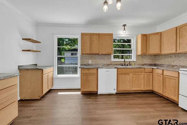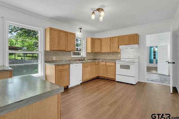 Spacious beauty situated on approximately 4.587 acres in the sought-after Lindale ISD! This remodeled stunner has 3 bedrooms, 2 baths, open concept kitchen, nicely done versatile garage conversion! Enjoy the large mudroom/utility room with plenty of room for a freezer. Large workshop with garage stall, office area and more! Additional outbuilding that could be turned into living quarters! Plenty of room for your animals, gardening, the sky's the limit! House has great curb appeal, schedule your showing and you will fall in love with this wonderful home! (Recent updates include but not limited to: Roof 2023, Gutters 2023, Inside AC unit 2023, Exterior paint 2023, Interior paint 2024, Flooring 2024, Cabinets 2024, Faucets 2024, Countertops 2024, Dishwasher 2024 and more!)